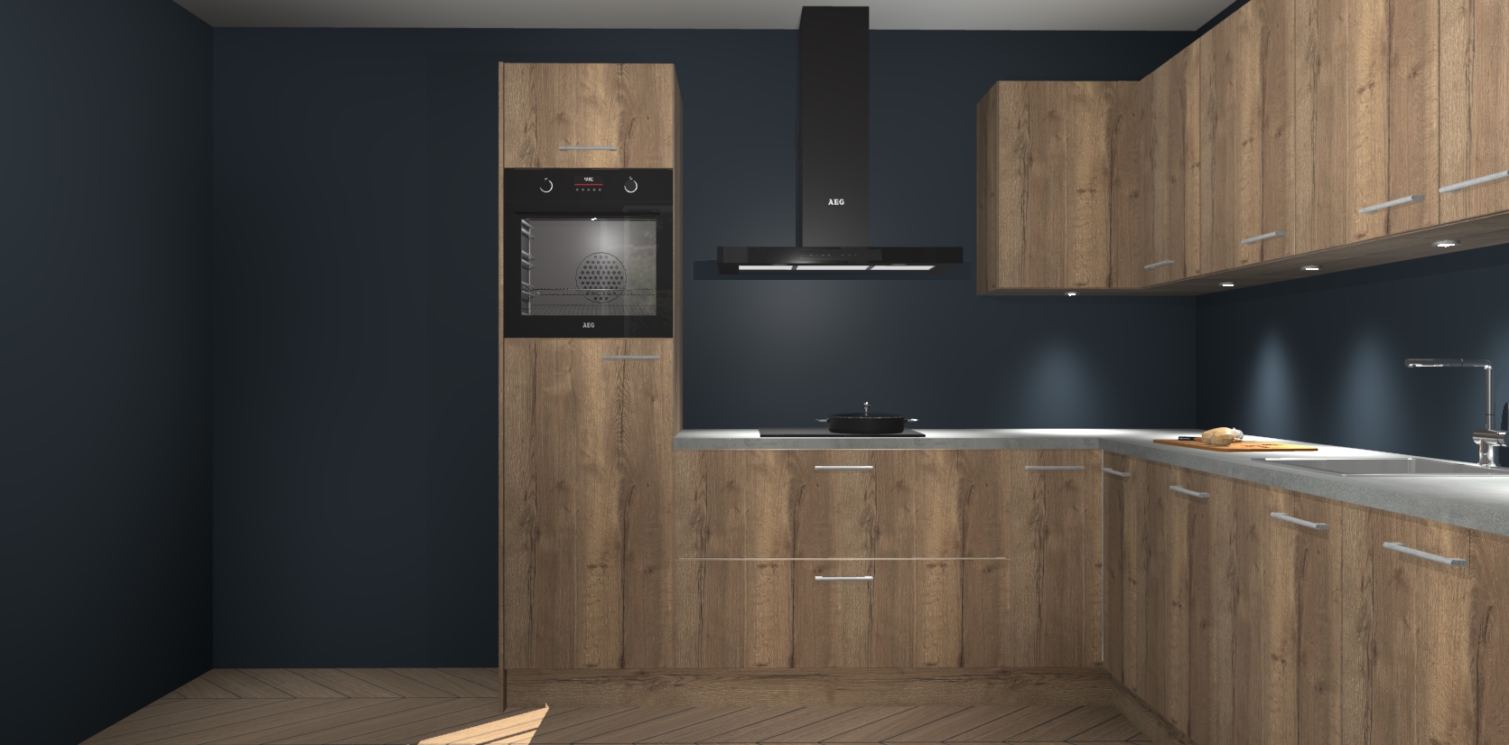 De Chocolade Eiken keuken Debar is uitgerust met vijf inbouwapparaten die elke kooktaak handig en efficiënt maken. Een oven, inductiekookplaat, afzuigkap, vaatwasser en koelkast zijn standaard, maar kunnen na bestelling eenvoudig worden geupgrade naar AEG. Profiteer vervolgens van de softclose deuren voor snelle toegang en geruisloze toegang.