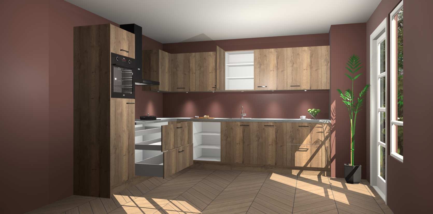 Als u op zoek bent naar de perfecte keuken om uw huis mee op te fleuren, zoek dan niet verder dan de Chocolade Eiken keuken Debar. Deze prachtige hoekkeuken straalt warmte en luxe uit met een modern maar geraffineerd design. Maak u nooit meer zorgen of u wel genoeg opbergruimte heeft; dit meubel biedt voldoende opbergruimte om al uw keukenbenodigdheden binnen handbereik te houden.