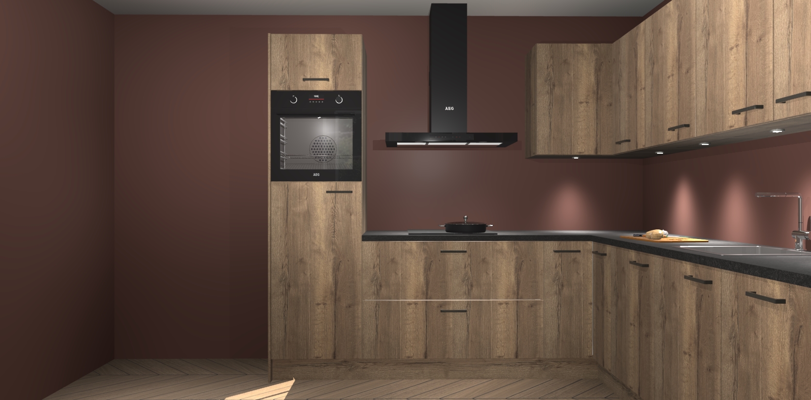 De Chocolade Eiken keuken Debar is uitgerust met vijf inbouwapparaten die elke kooktaak handig en efficiënt maken. Een oven, inductiekookplaat, afzuigkap, vaatwasser en koelkast zijn standaard, maar kunnen na bestelling eenvoudig worden geupgrade naar AEG. Profiteer vervolgens van de softclose deuren voor snelle toegang en geruisloze toegang.