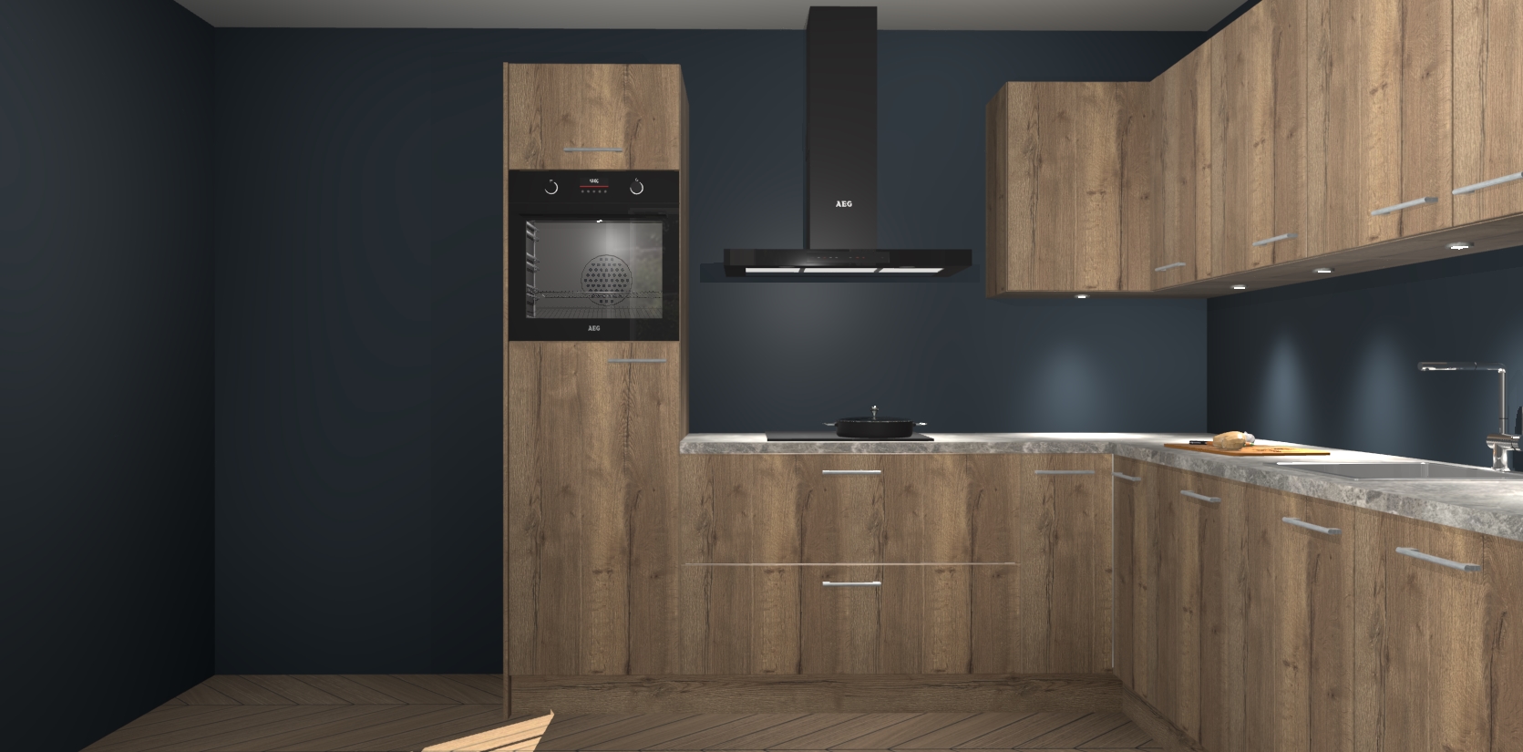 De Chocolade Eiken keuken Debar is uitgerust met vijf inbouwapparaten die elke kooktaak handig en efficiënt maken. Een oven, inductiekookplaat, afzuigkap, vaatwasser en koelkast zijn standaard, maar kunnen na bestelling eenvoudig worden geupgrade naar AEG. Profiteer vervolgens van de softclose deuren voor snelle toegang en geruisloze toegang.