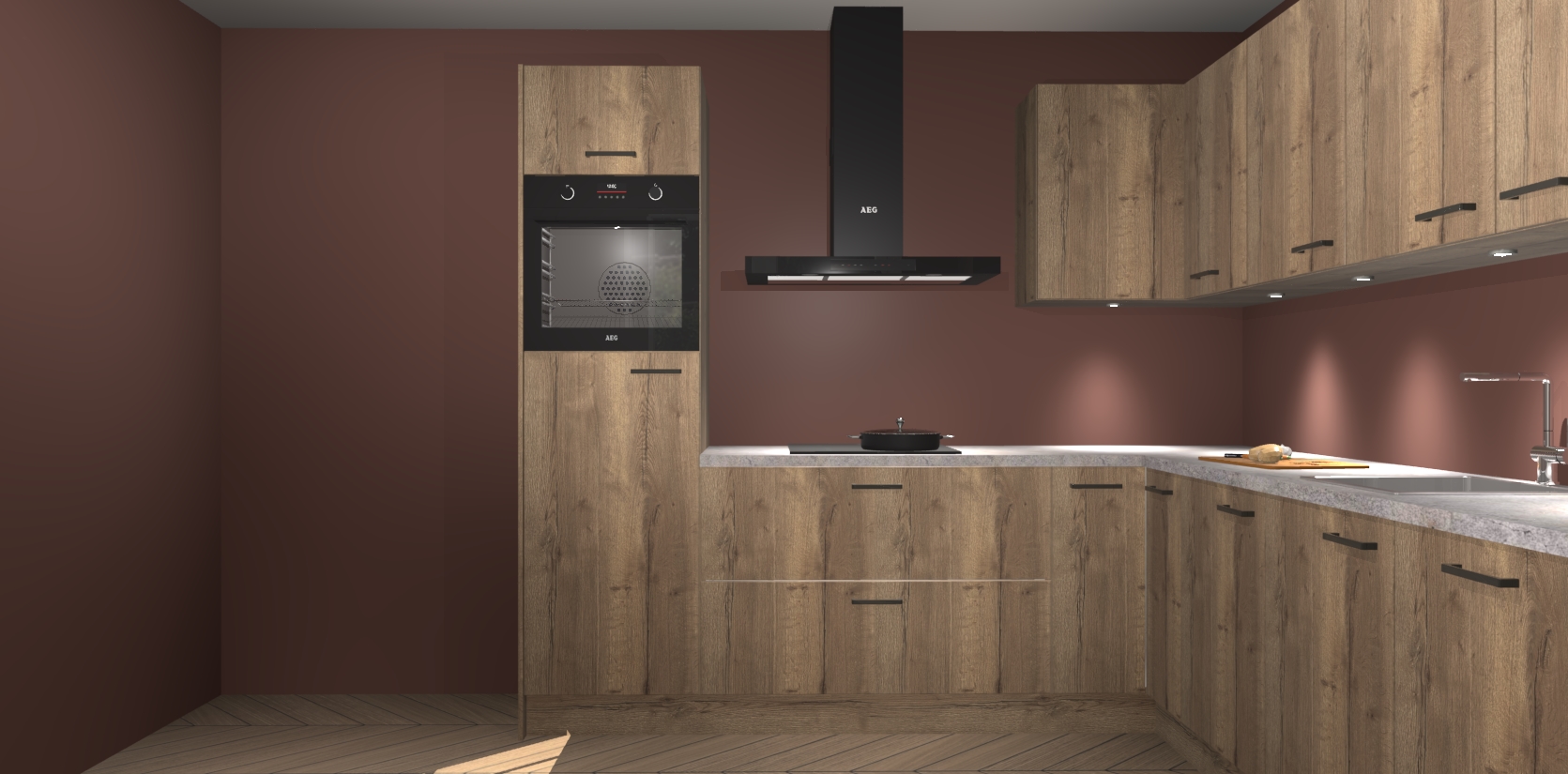 De Chocolade Eiken keuken Debar is uitgerust met vijf inbouwapparaten die elke kooktaak handig en efficiënt maken. Een oven, inductiekookplaat, afzuigkap, vaatwasser en koelkast zijn standaard, maar kunnen na bestelling eenvoudig worden geupgrade naar AEG. Profiteer vervolgens van de softclose deuren voor snelle toegang en geruisloze toegang.