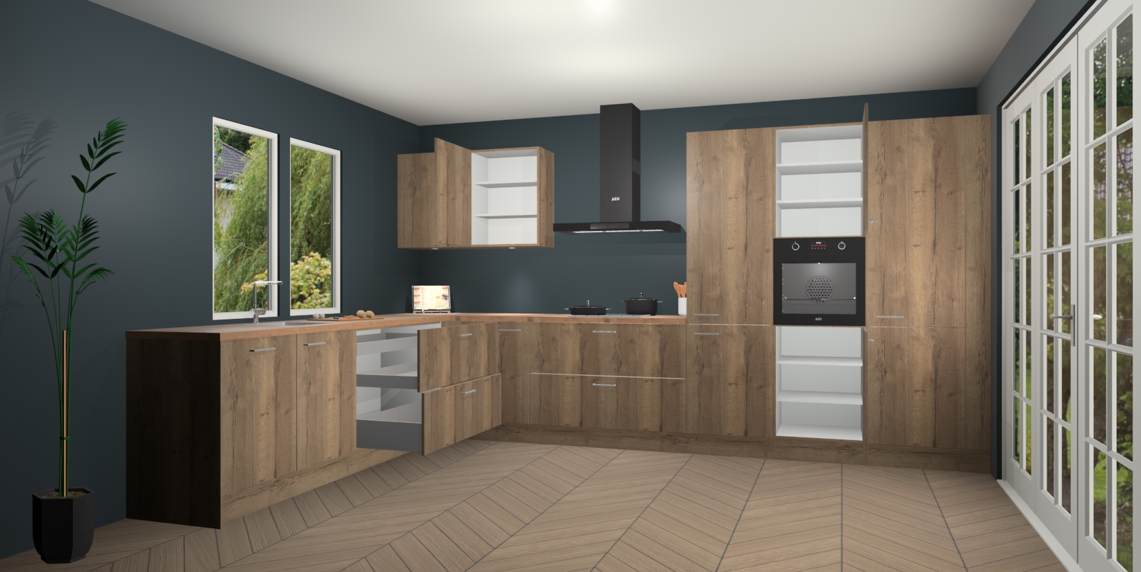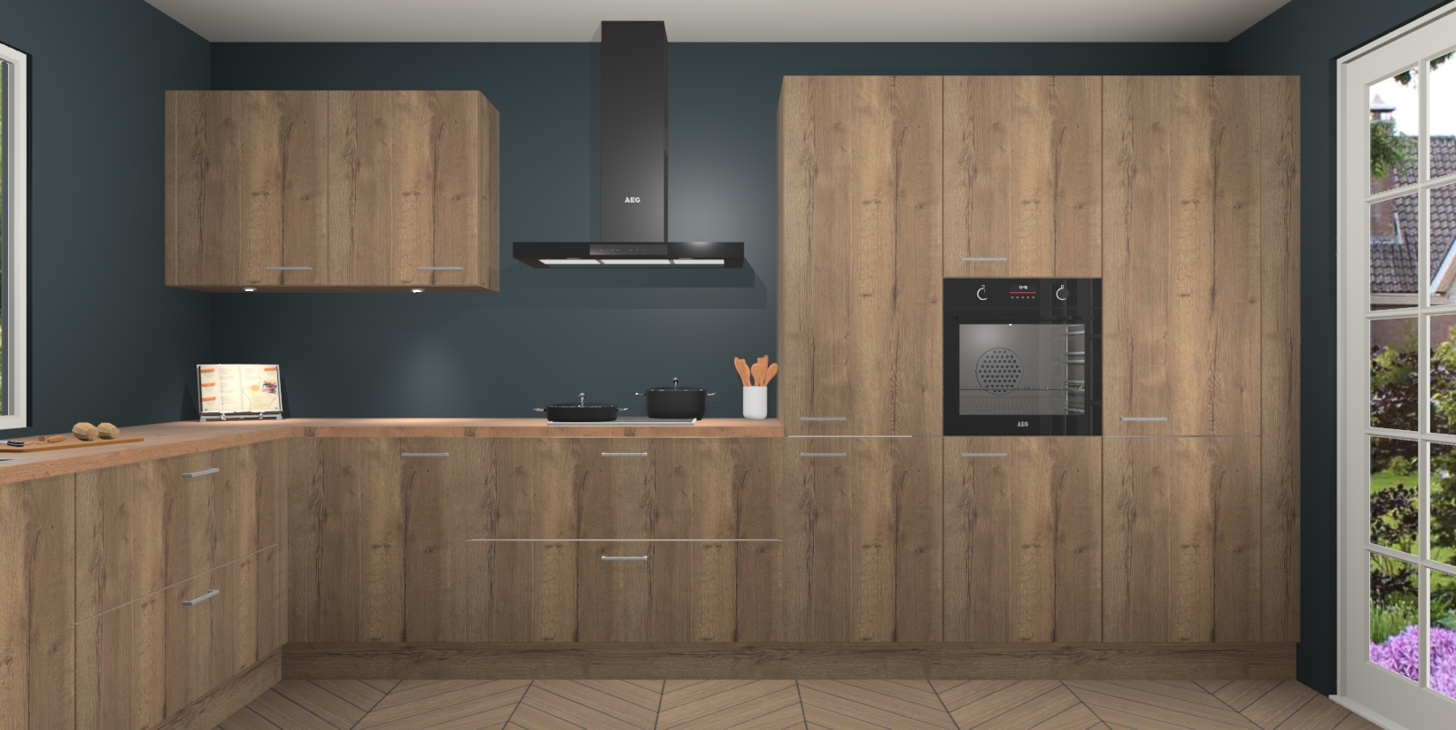 Kom dichtbij de perfecte keuken van uw dromen met de Chocolade Eiken keuken Debrecen. Met een prachtige houtlook en eigentijds ontwerp, straalt deze keuken warmte en sfeer uit. Of u nu liefhebber bent van traditionele of moderne stijlen, er is genoeg ruimte om aan al uw behoeften te voldoen.