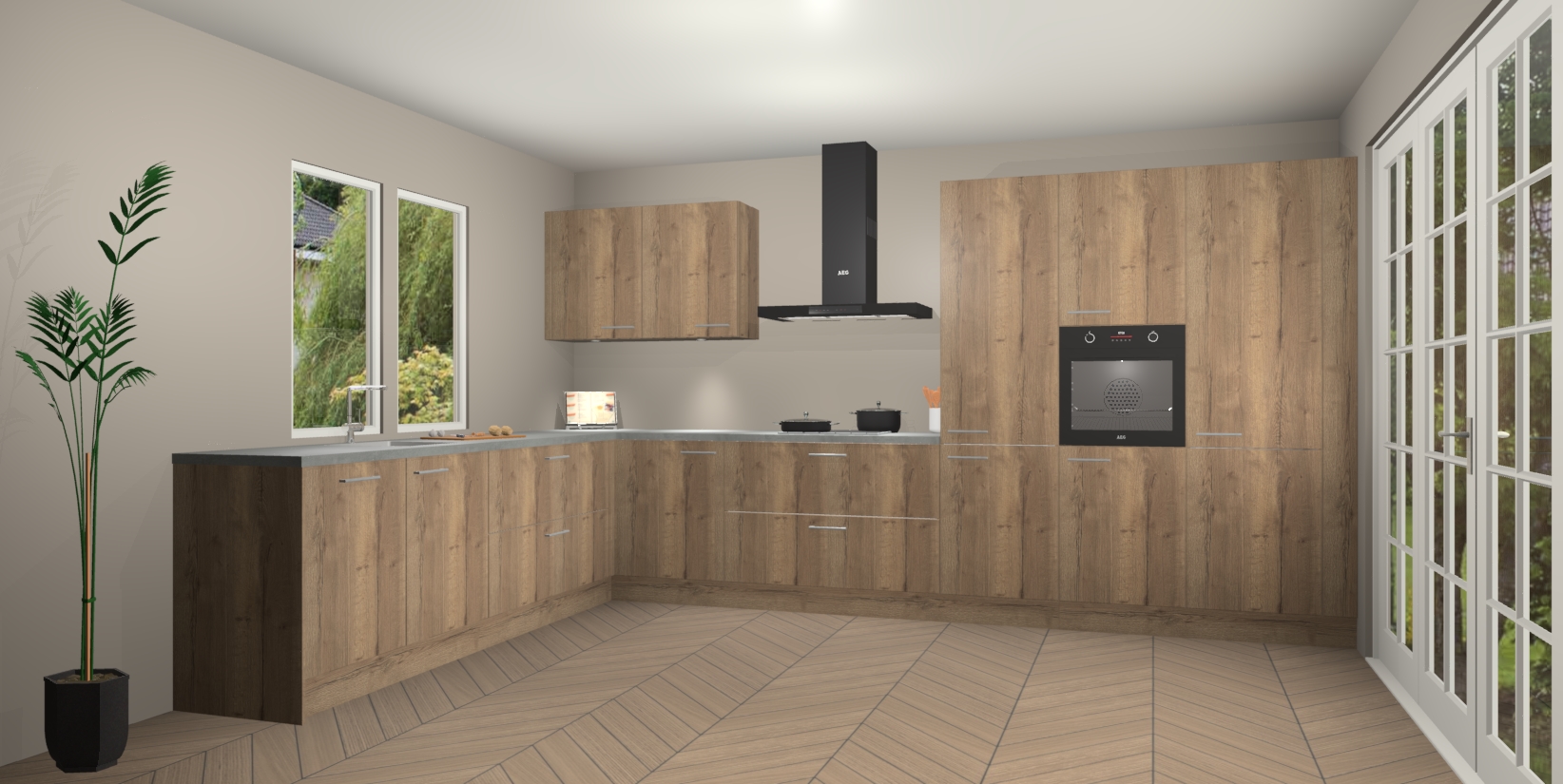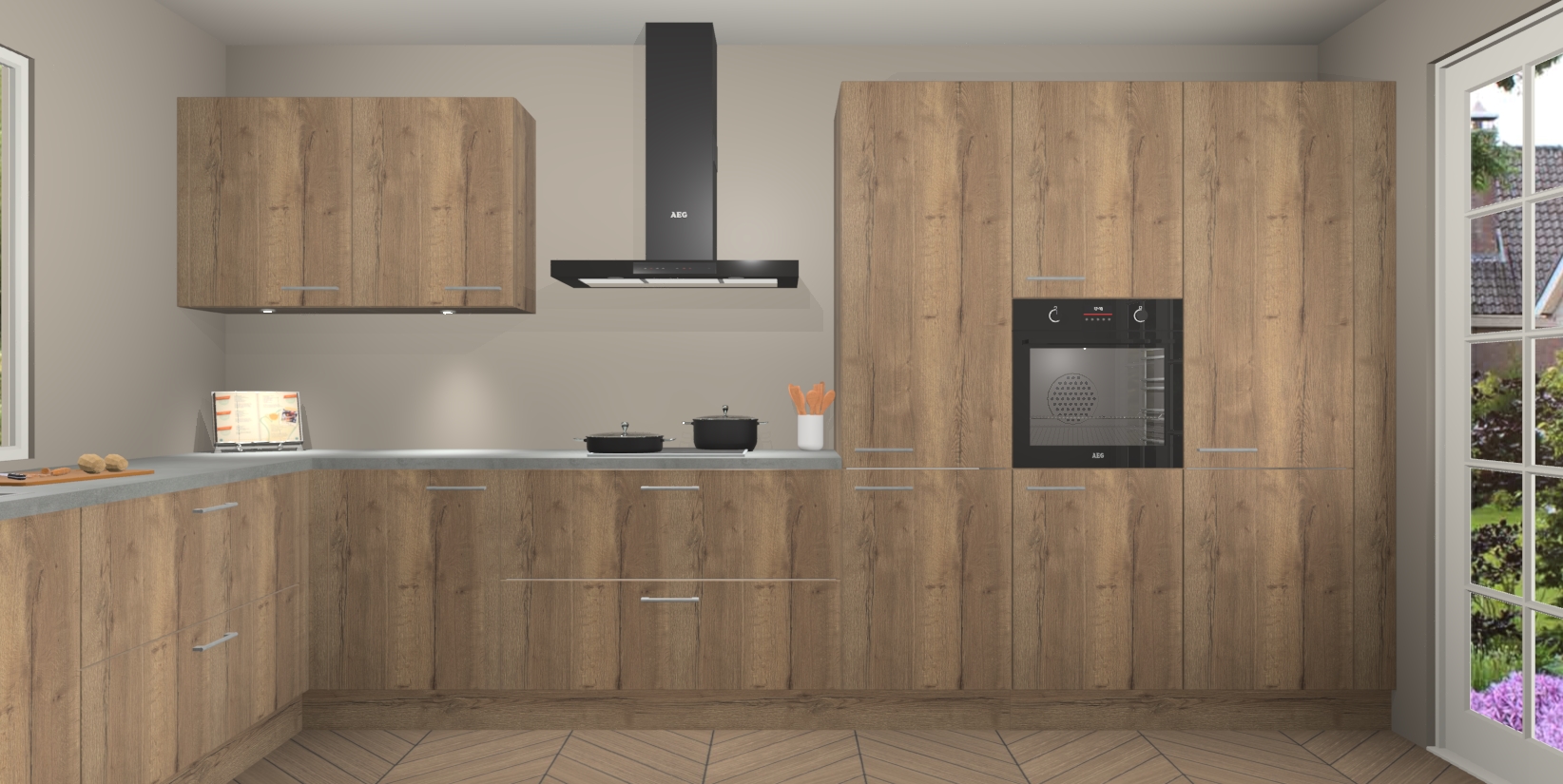 Kom dichtbij de perfecte keuken van uw dromen met de Chocolade Eiken keuken Debrecen. Met een prachtige houtlook en eigentijds ontwerp, straalt deze keuken warmte en sfeer uit. Of u nu liefhebber bent van traditionele of moderne stijlen, er is genoeg ruimte om aan al uw behoeften te voldoen.