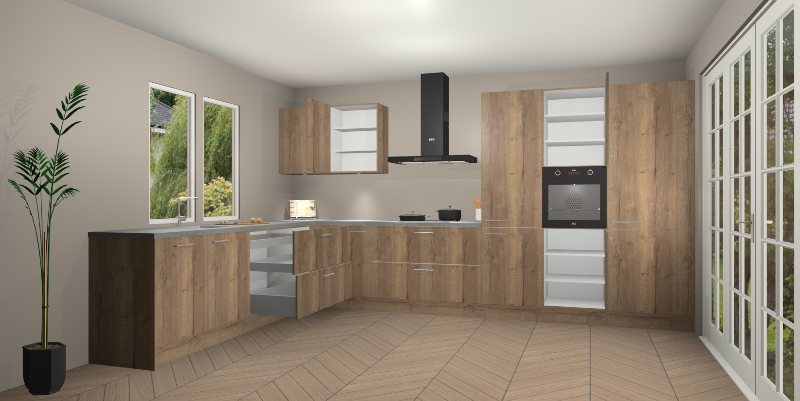 Heeft u nog apparatuur nodig? Geen probleem: de Chocolade Eiken keuken Debrecen bevat vijf ingebouwde apparaten - een oven, inductiekookplaat, afzuigkap, vaatwasser en koelkast - die gemakkelijk kunnen worden bijgewerkt naar AEG na bestelling. En als dat nog niet genoeg is; onze kasten worden pre-geassembleerd geleverd en zijn verkrijgbaar tegen een vastgeroeste lage prijs! U hoeft nooit meer te zoeken naar goede kwaliteit en service want onze producten hebben echt Duitse kwaliteit.