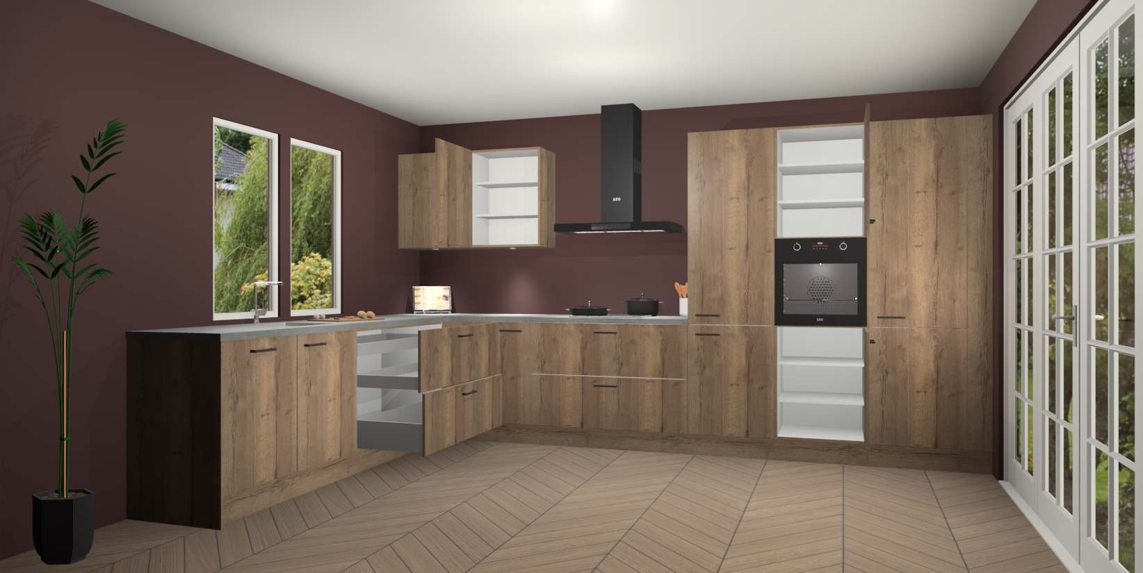 Kom dichtbij de perfecte keuken van uw dromen met de Chocolade Eiken keuken Debrecen. Met een prachtige houtlook en eigentijds ontwerp, straalt deze keuken warmte en sfeer uit. Of u nu liefhebber bent van traditionele of moderne stijlen, er is genoeg ruimte om aan al uw behoeften te voldoen.