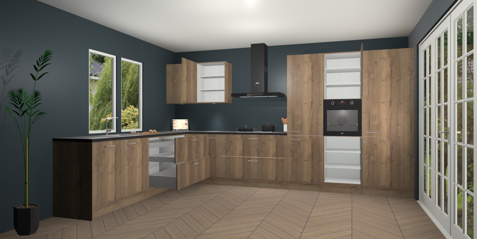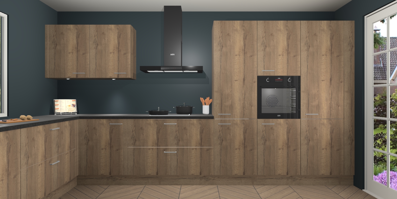 Kom dichtbij de perfecte keuken van uw dromen met de Chocolade Eiken keuken Debrecen. Met een prachtige houtlook en eigentijds ontwerp, straalt deze keuken warmte en sfeer uit. Of u nu liefhebber bent van traditionele of moderne stijlen, er is genoeg ruimte om aan al uw behoeften te voldoen.