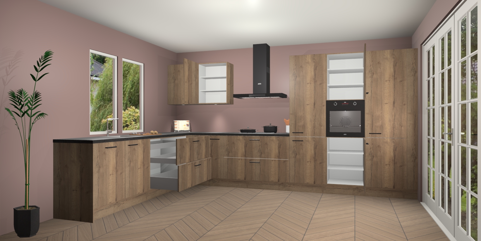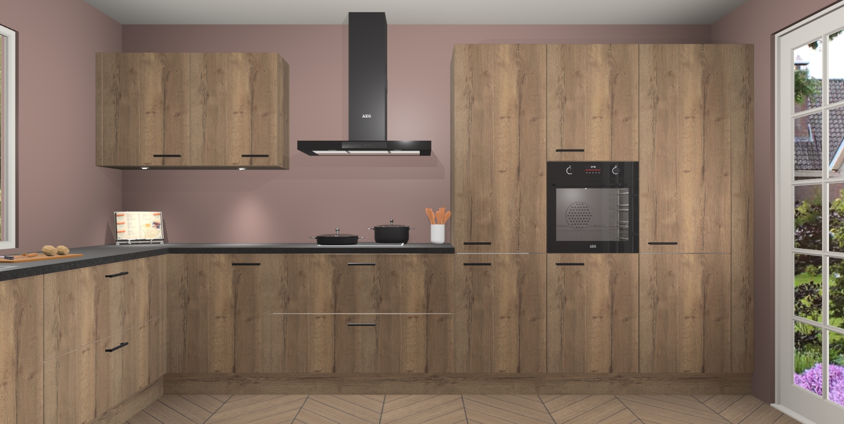 Heeft u nog apparatuur nodig? Geen probleem: de Chocolade Eiken keuken Debrecen bevat vijf ingebouwde apparaten - een oven, inductiekookplaat, afzuigkap, vaatwasser en koelkast - die gemakkelijk kunnen worden bijgewerkt naar AEG na bestelling. En als dat nog niet genoeg is; onze kasten worden pre-geassembleerd geleverd en zijn verkrijgbaar tegen een vastgeroeste lage prijs! U hoeft nooit meer te zoeken naar goede kwaliteit en service want onze producten hebben echt Duitse kwaliteit.