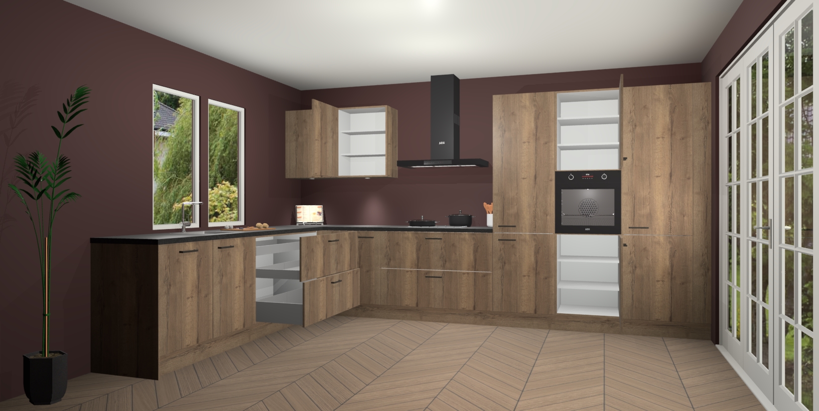 Heeft u nog apparatuur nodig? Geen probleem: de Chocolade Eiken keuken Debrecen bevat vijf ingebouwde apparaten - een oven, inductiekookplaat, afzuigkap, vaatwasser en koelkast - die gemakkelijk kunnen worden bijgewerkt naar AEG na bestelling. En als dat nog niet genoeg is; onze kasten worden pre-geassembleerd geleverd en zijn verkrijgbaar tegen een vastgeroeste lage prijs! U hoeft nooit meer te zoeken naar goede kwaliteit en service want onze producten hebben echt Duitse kwaliteit.
