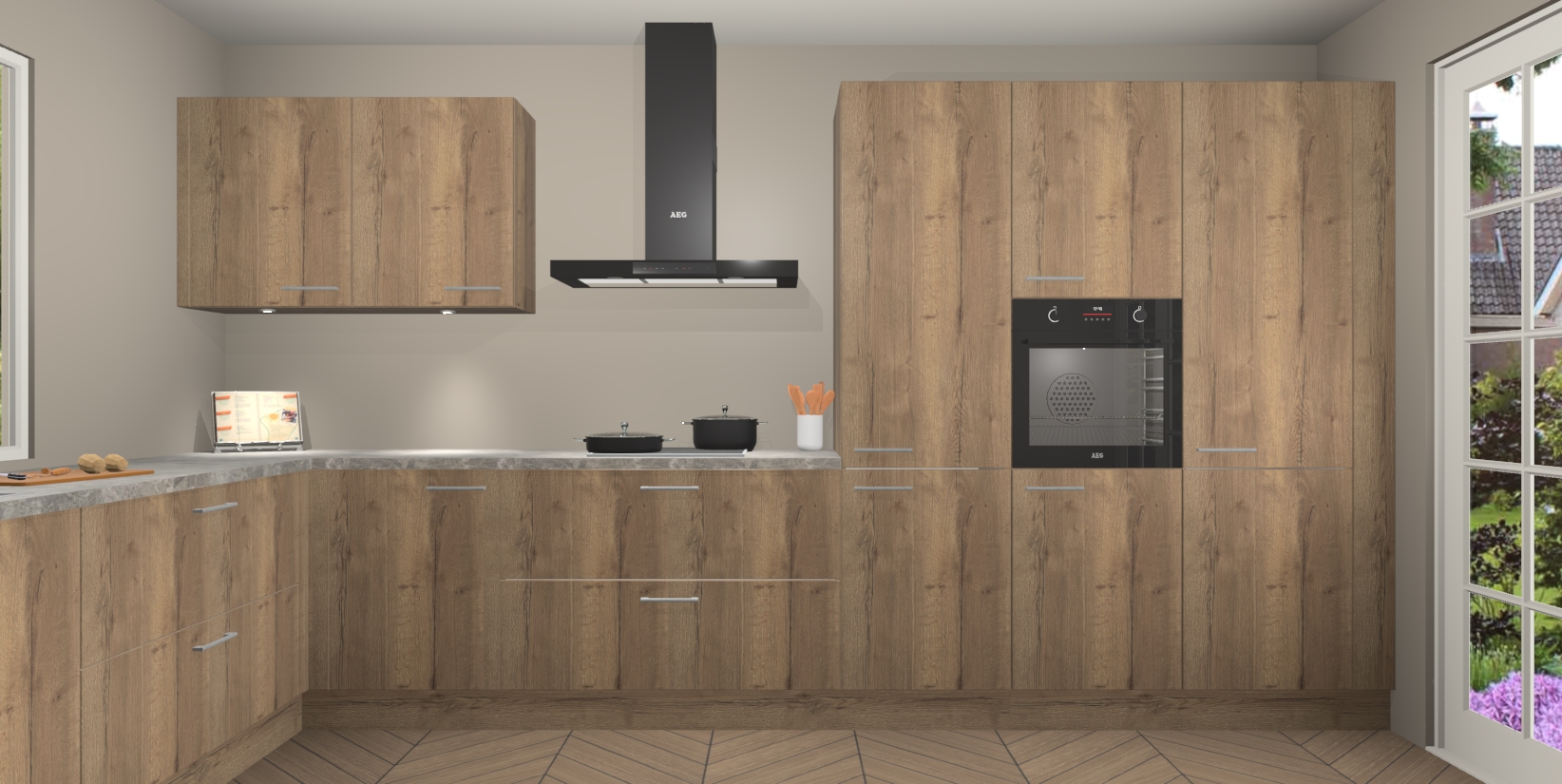 Kom dichtbij de perfecte keuken van uw dromen met de Chocolade Eiken keuken Debrecen. Met een prachtige houtlook en eigentijds ontwerp, straalt deze keuken warmte en sfeer uit. Of u nu liefhebber bent van traditionele of moderne stijlen, er is genoeg ruimte om aan al uw behoeften te voldoen.