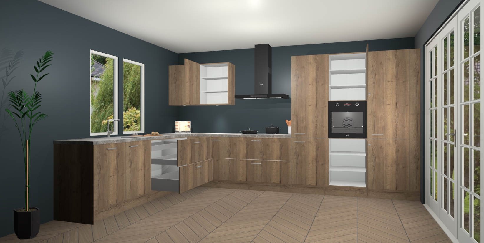 Kom dichtbij de perfecte keuken van uw dromen met de Chocolade Eiken keuken Debrecen. Met een prachtige houtlook en eigentijds ontwerp, straalt deze keuken warmte en sfeer uit. Of u nu liefhebber bent van traditionele of moderne stijlen, er is genoeg ruimte om aan al uw behoeften te voldoen.