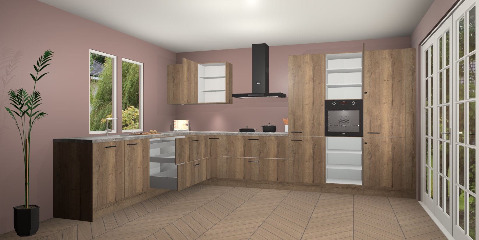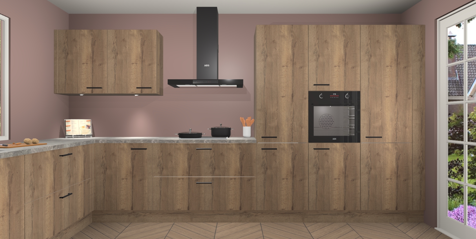Kom dichtbij de perfecte keuken van uw dromen met de Chocolade Eiken keuken Debrecen. Met een prachtige houtlook en eigentijds ontwerp, straalt deze keuken warmte en sfeer uit. Of u nu liefhebber bent van traditionele of moderne stijlen, er is genoeg ruimte om aan al uw behoeften te voldoen.