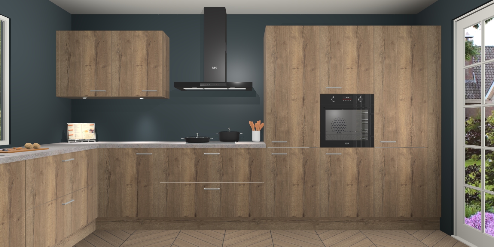 Kom dichtbij de perfecte keuken van uw dromen met de Chocolade Eiken keuken Debrecen. Met een prachtige houtlook en eigentijds ontwerp, straalt deze keuken warmte en sfeer uit. Of u nu liefhebber bent van traditionele of moderne stijlen, er is genoeg ruimte om aan al uw behoeften te voldoen.