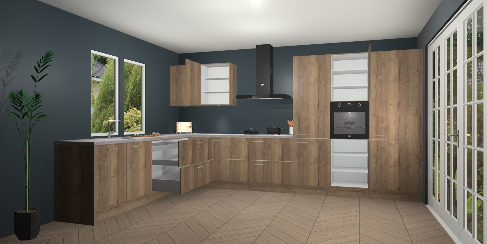 Heeft u nog apparatuur nodig? Geen probleem: de Chocolade Eiken keuken Debrecen bevat vijf ingebouwde apparaten - een oven, inductiekookplaat, afzuigkap, vaatwasser en koelkast - die gemakkelijk kunnen worden bijgewerkt naar AEG na bestelling. En als dat nog niet genoeg is; onze kasten worden pre-geassembleerd geleverd en zijn verkrijgbaar tegen een vastgeroeste lage prijs! U hoeft nooit meer te zoeken naar goede kwaliteit en service want onze producten hebben echt Duitse kwaliteit.