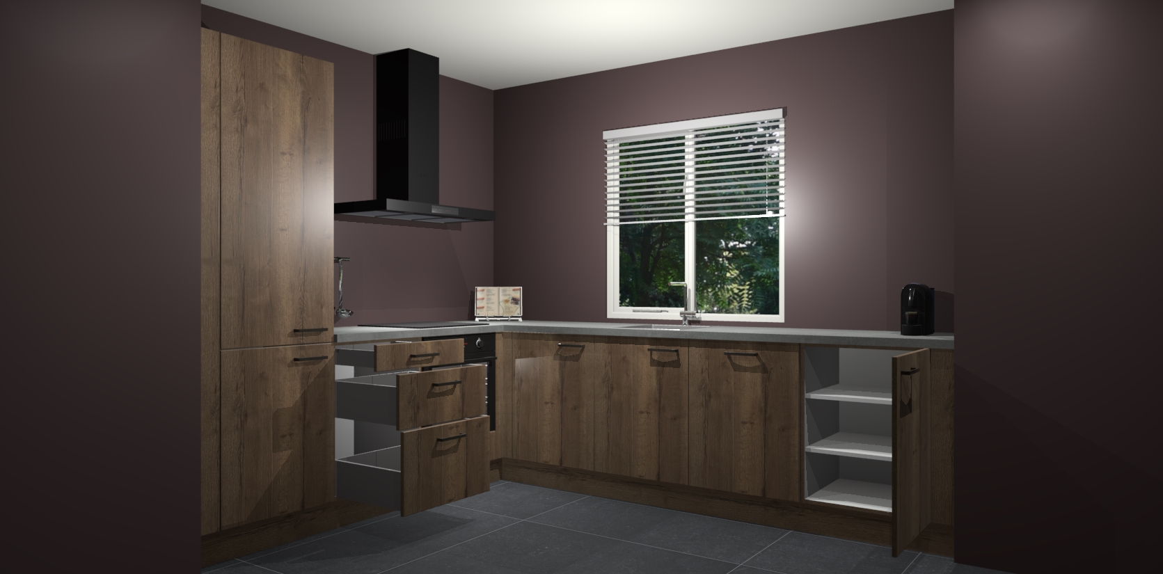 Maak kennis met de Chocolade Eiken keuken Doha - de perfecte aanvulling voor uw moderne keuken! Ervaar tijdloos design, elegantie en een chique uitstraling met onze zwarte handgrepen, soft-close deuren en veel opbergruimte. Dit alles wordt aangeboden tegen een vaste lage prijs voor ongeëvenaarde Duitse keukenkwaliteit!
