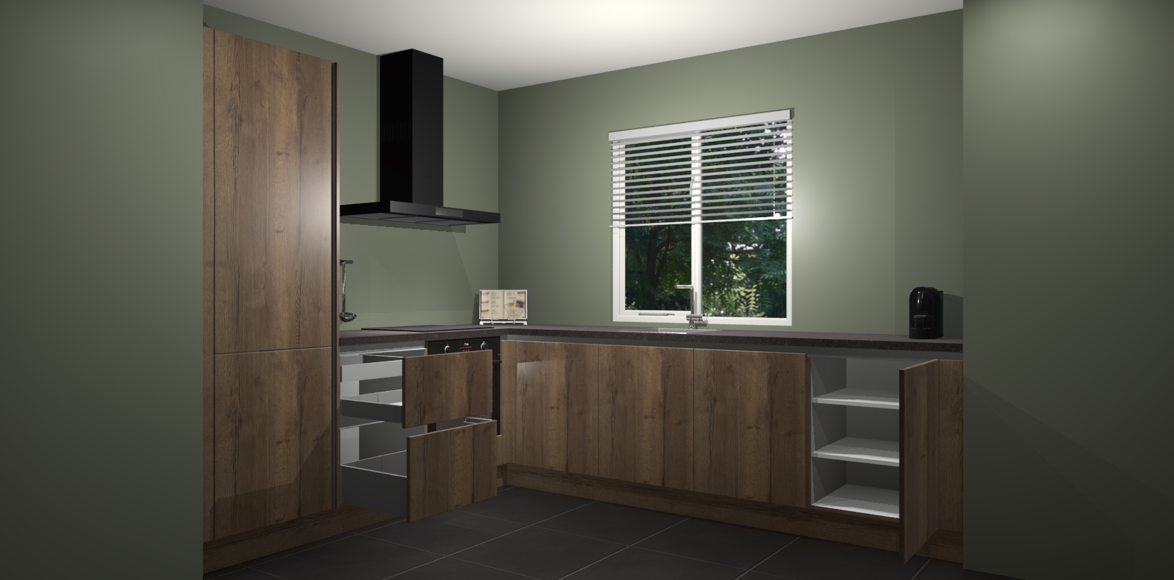 Maak kennis met de Chocolade Eiken keuken Doha - de perfecte aanvulling voor uw moderne keuken! Ervaar tijdloos design, elegantie en een chique uitstraling met onze zwarte handgrepen, soft-close deuren en veel opbergruimte. Dit alles wordt aangeboden tegen een vaste lage prijs voor ongeëvenaarde Duitse keukenkwaliteit!