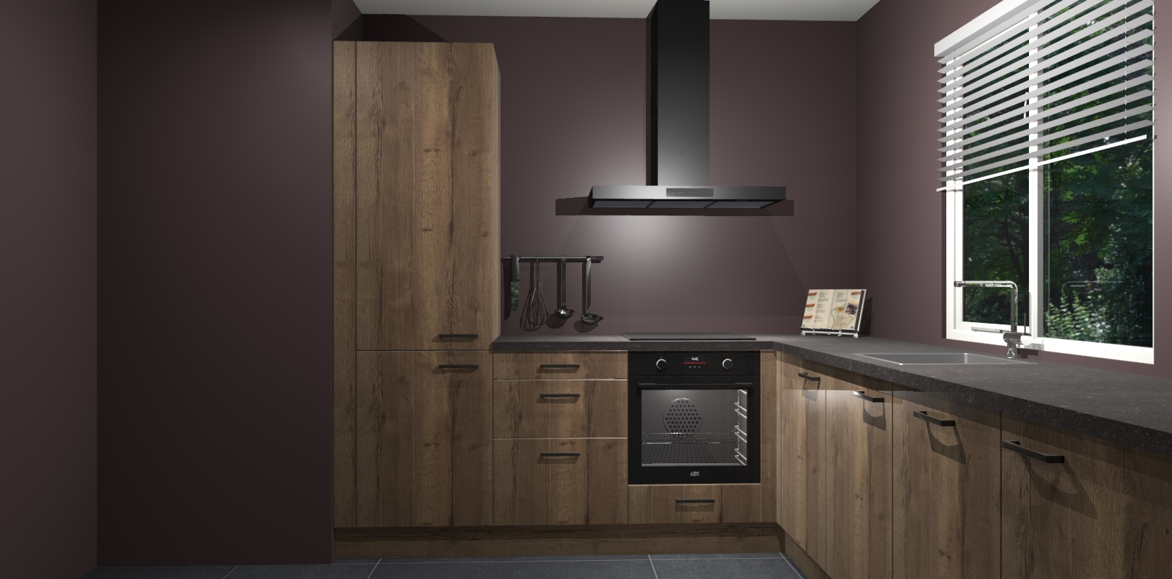 Maak kennis met de Chocolade Eiken keuken Doha - de perfecte aanvulling voor uw moderne keuken! Ervaar tijdloos design, elegantie en een chique uitstraling met onze zwarte handgrepen, soft-close deuren en veel opbergruimte. Dit alles wordt aangeboden tegen een vaste lage prijs voor ongeëvenaarde Duitse keukenkwaliteit!