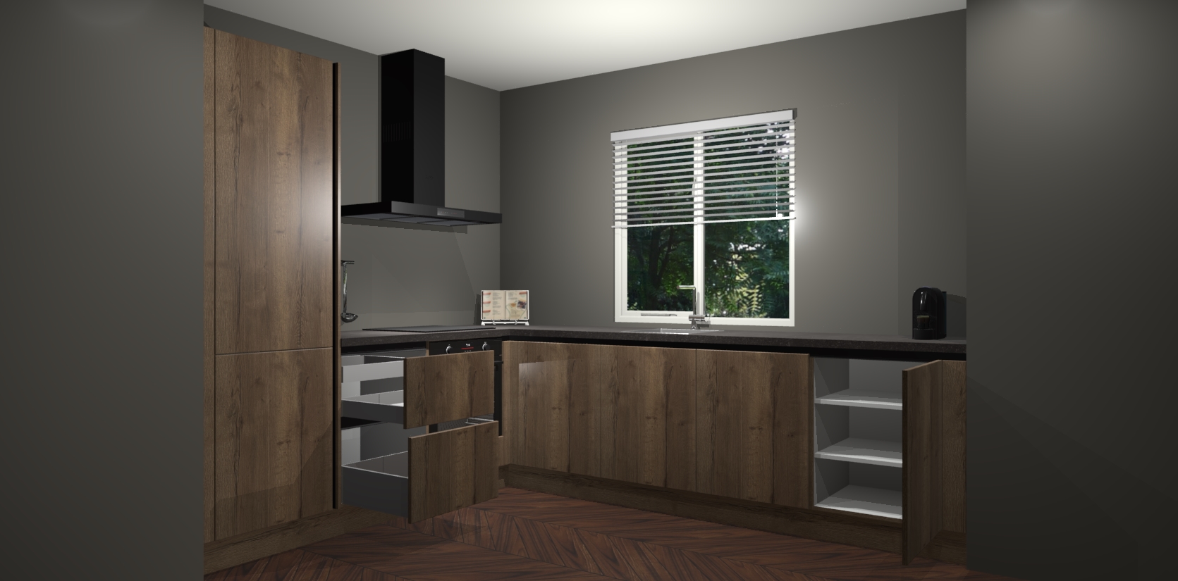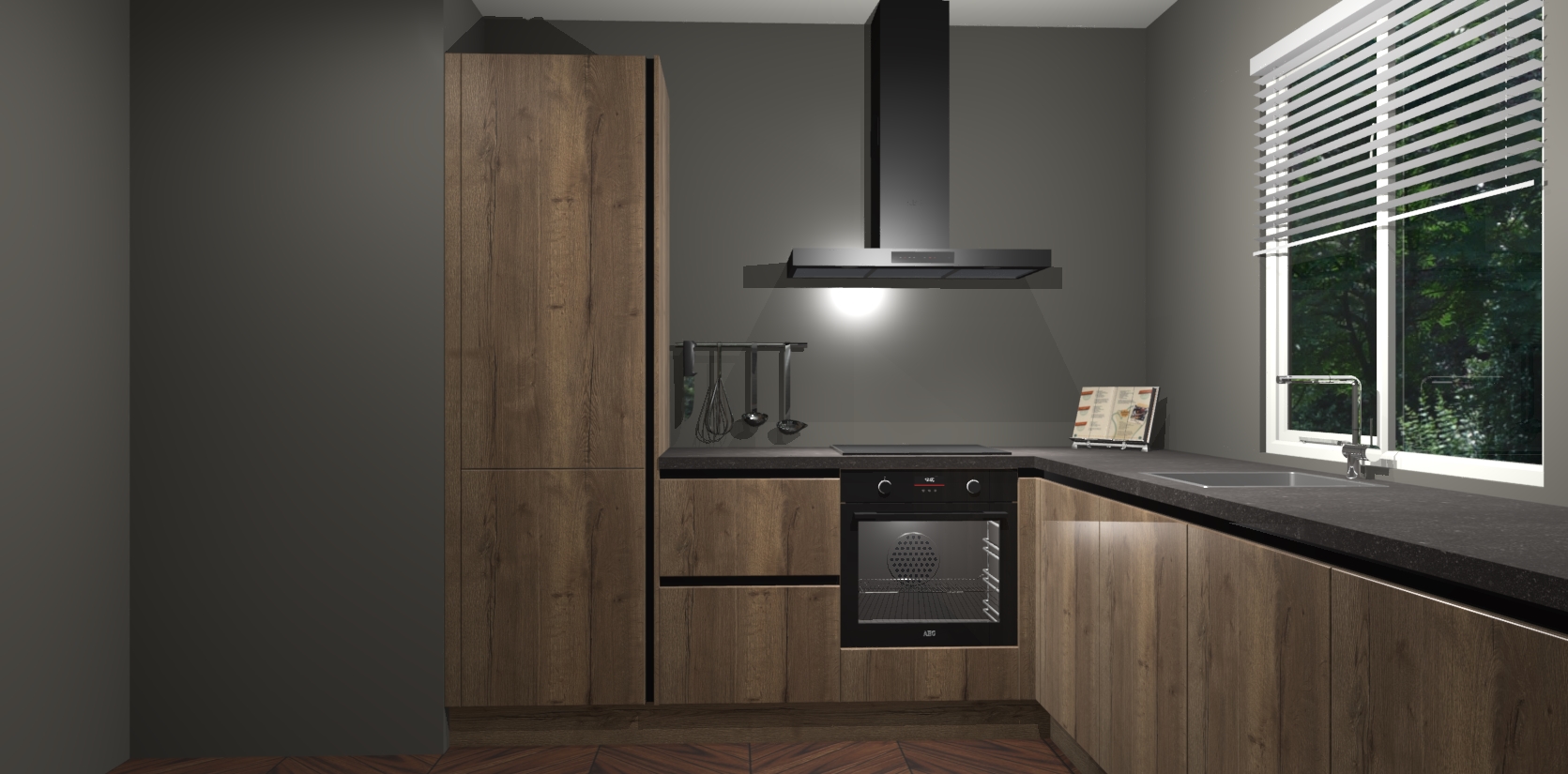 Maak kennis met de Chocolade Eiken keuken Doha - de perfecte aanvulling voor uw moderne keuken! Ervaar tijdloos design, elegantie en een chique uitstraling met onze zwarte handgrepen, soft-close deuren en veel opbergruimte. Dit alles wordt aangeboden tegen een vaste lage prijs voor ongeëvenaarde Duitse keukenkwaliteit!
