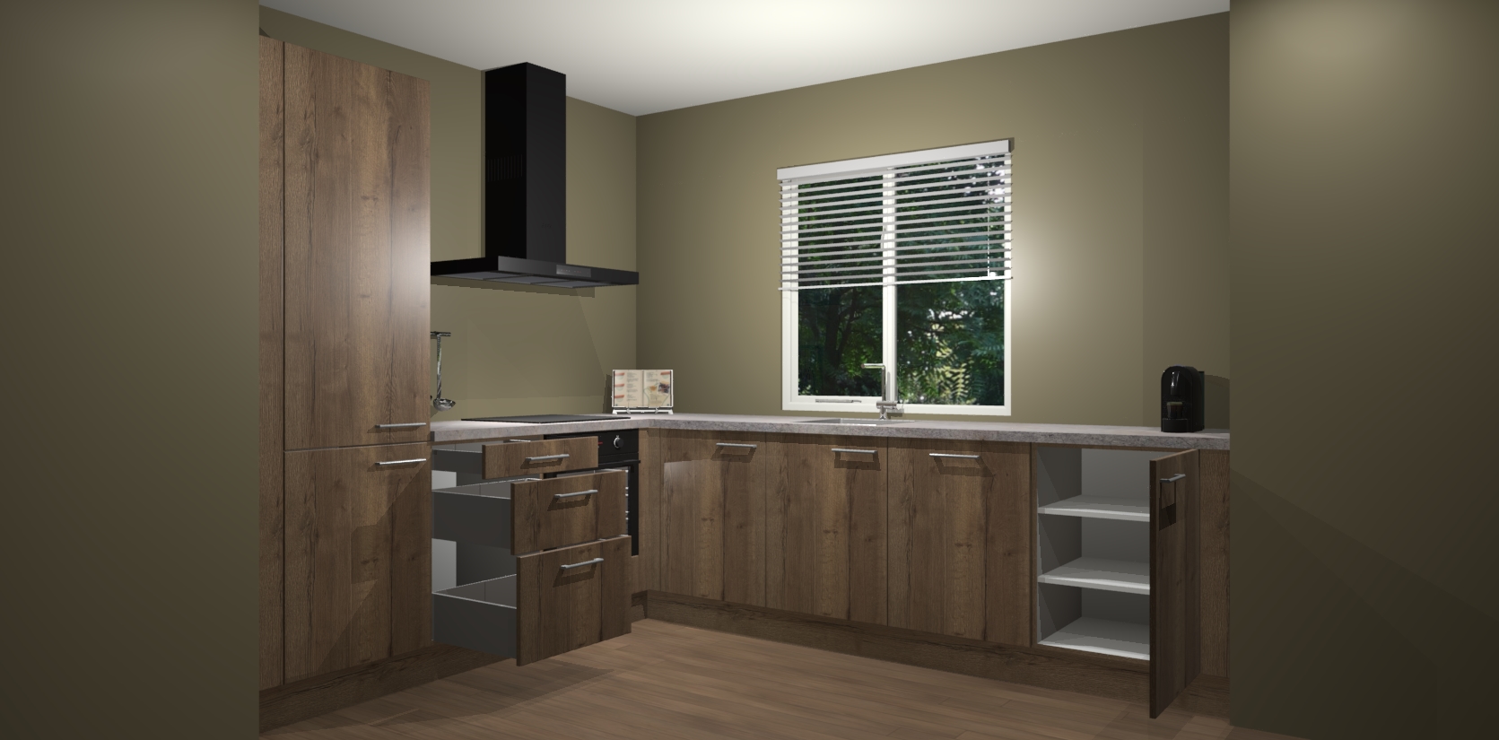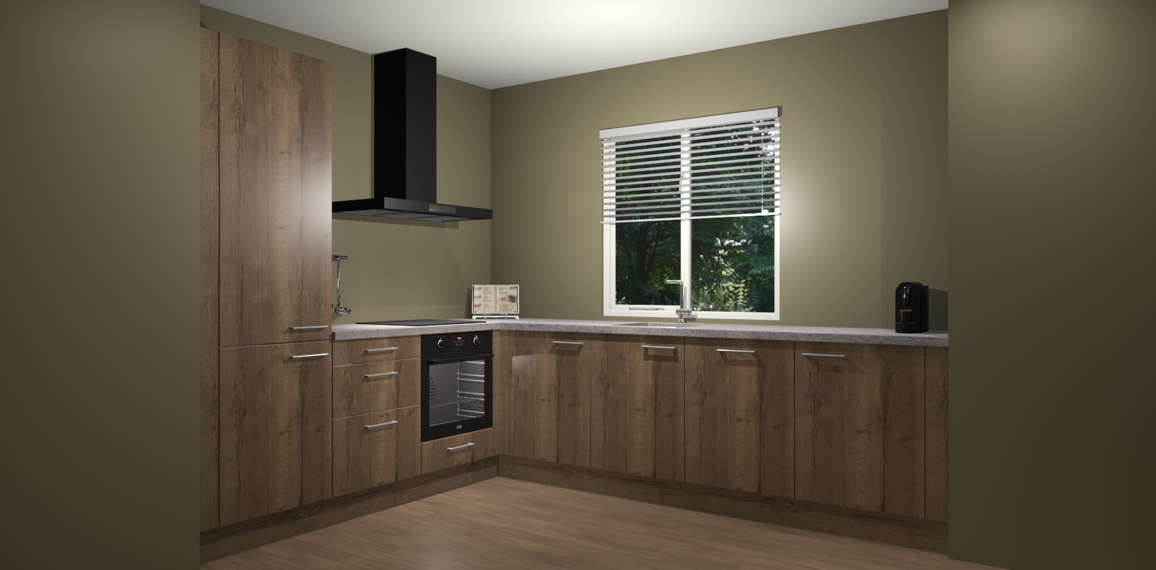 Maak kennis met de Chocolade Eiken keuken Doha - de perfecte aanvulling voor uw moderne keuken! Ervaar tijdloos design, elegantie en een chique uitstraling met onze zwarte handgrepen, soft-close deuren en veel opbergruimte. Dit alles wordt aangeboden tegen een vaste lage prijs voor ongeëvenaarde Duitse keukenkwaliteit!