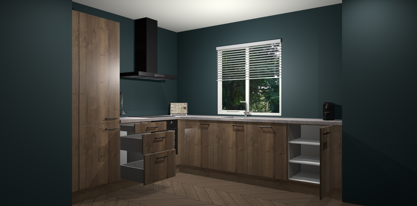 Maak kennis met de Chocolade Eiken keuken Doha - de perfecte aanvulling voor uw moderne keuken! Ervaar tijdloos design, elegantie en een chique uitstraling met onze zwarte handgrepen, soft-close deuren en veel opbergruimte. Dit alles wordt aangeboden tegen een vaste lage prijs voor ongeëvenaarde Duitse keukenkwaliteit!