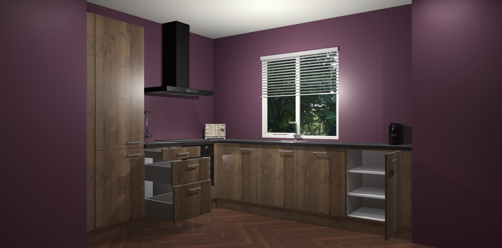Maak kennis met de Chocolade Eiken keuken Doha - de perfecte aanvulling voor uw moderne keuken! Ervaar tijdloos design, elegantie en een chique uitstraling met onze zwarte handgrepen, soft-close deuren en veel opbergruimte. Dit alles wordt aangeboden tegen een vaste lage prijs voor ongeëvenaarde Duitse keukenkwaliteit!