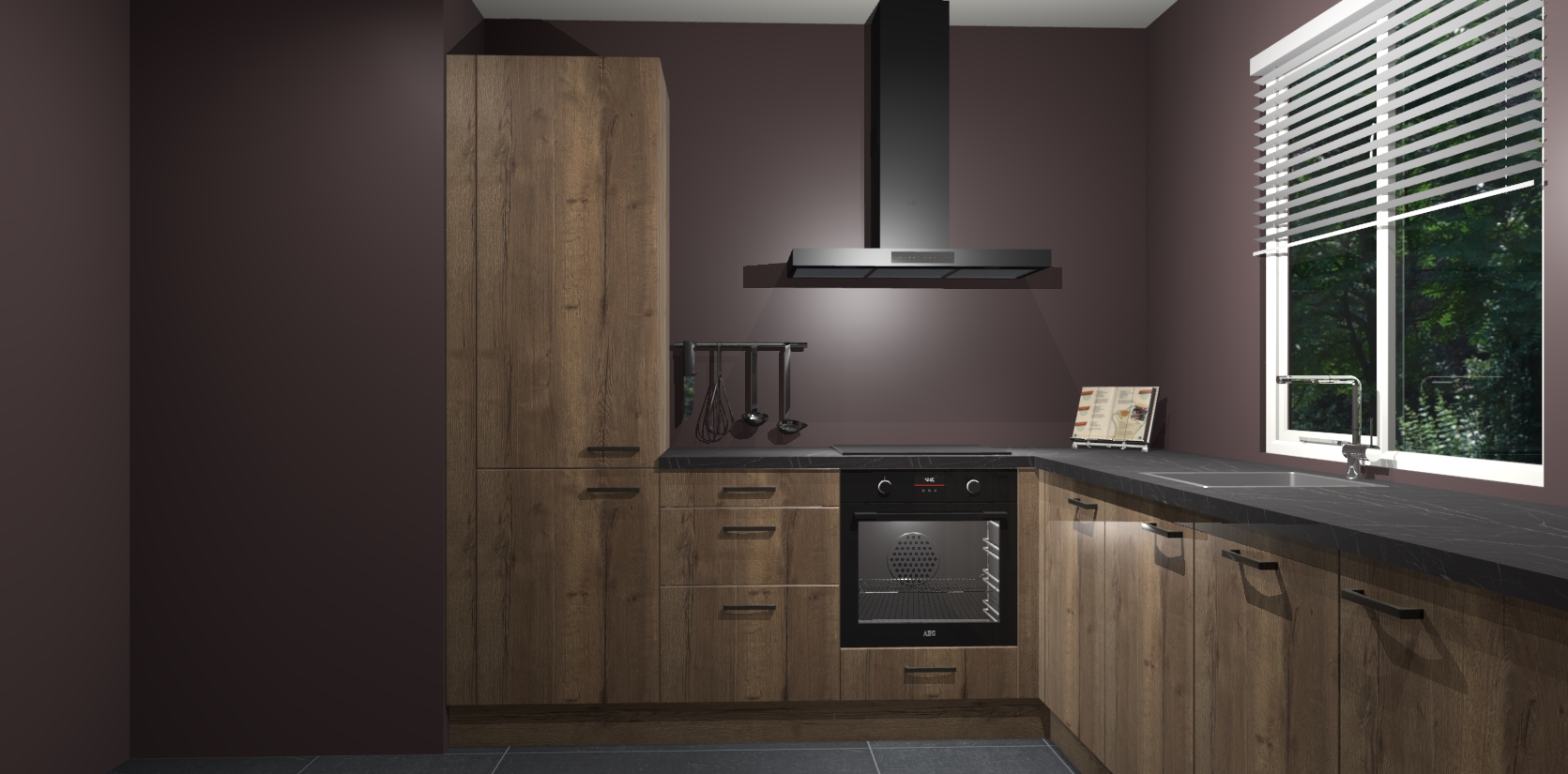 Maak kennis met de Chocolade Eiken keuken Doha - de perfecte aanvulling voor uw moderne keuken! Ervaar tijdloos design, elegantie en een chique uitstraling met onze zwarte handgrepen, soft-close deuren en veel opbergruimte. Dit alles wordt aangeboden tegen een vaste lage prijs voor ongeëvenaarde Duitse keukenkwaliteit!