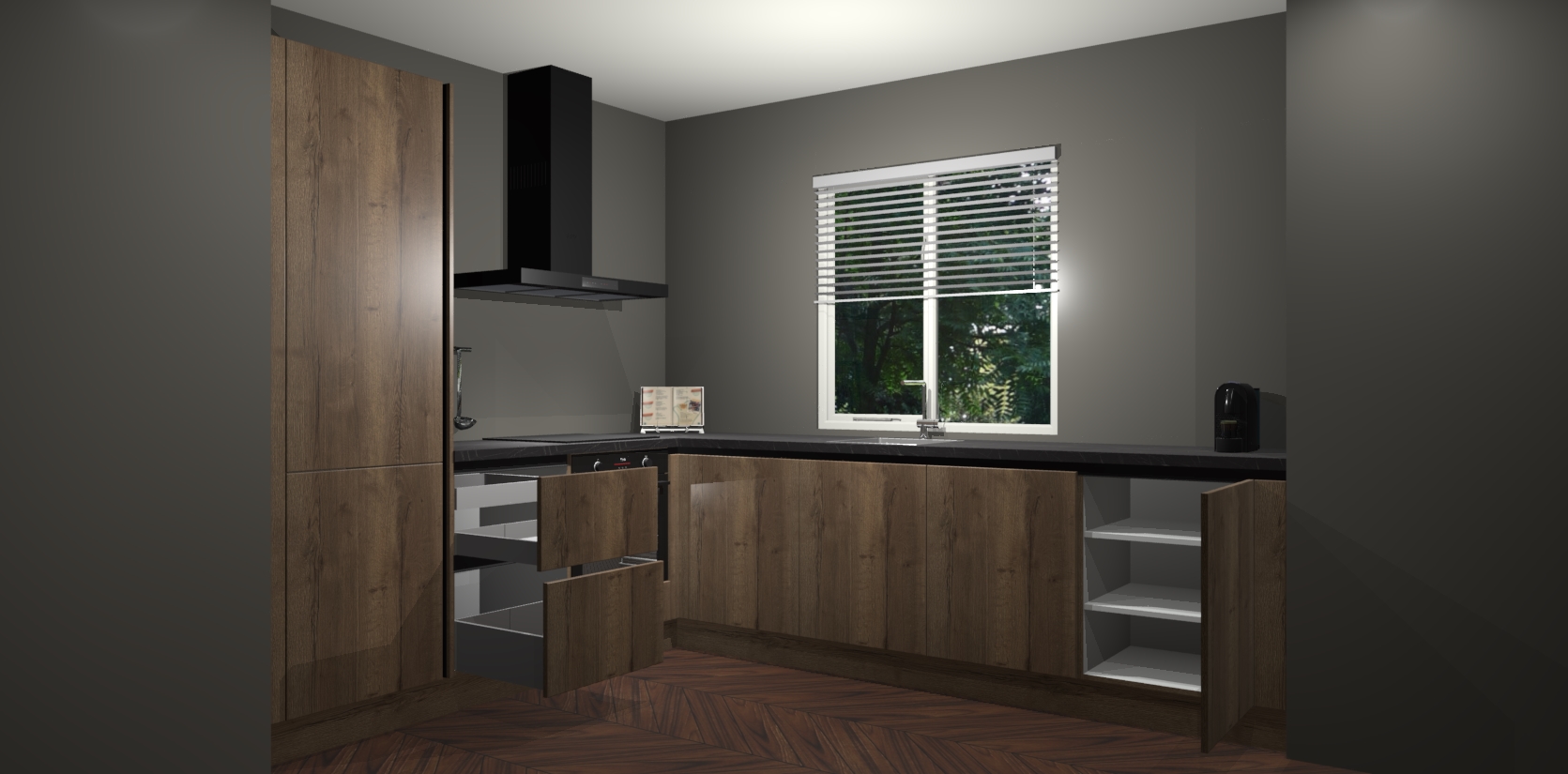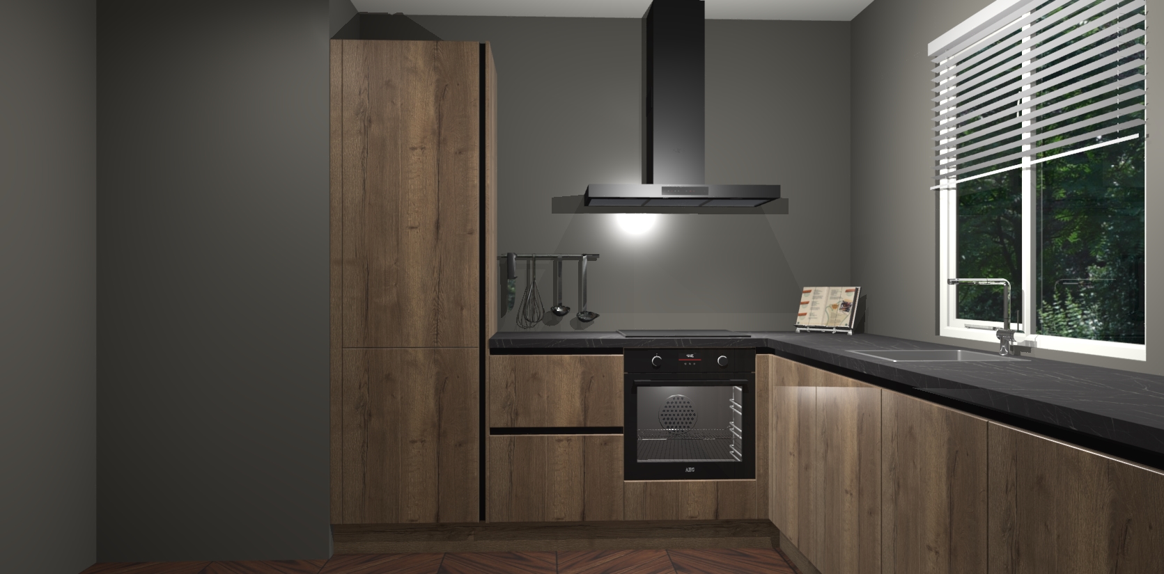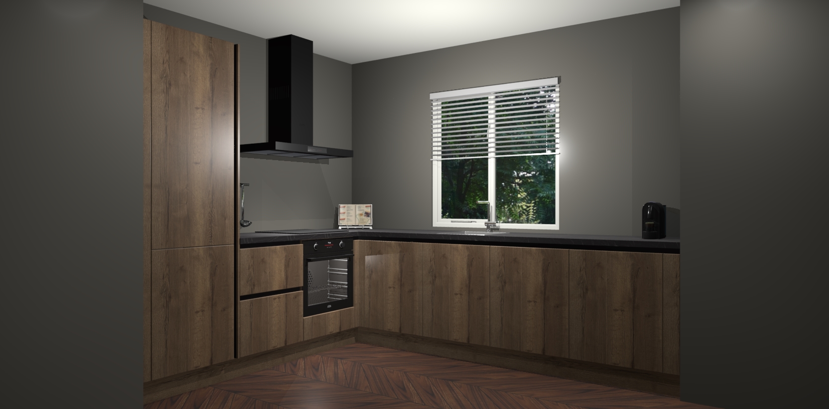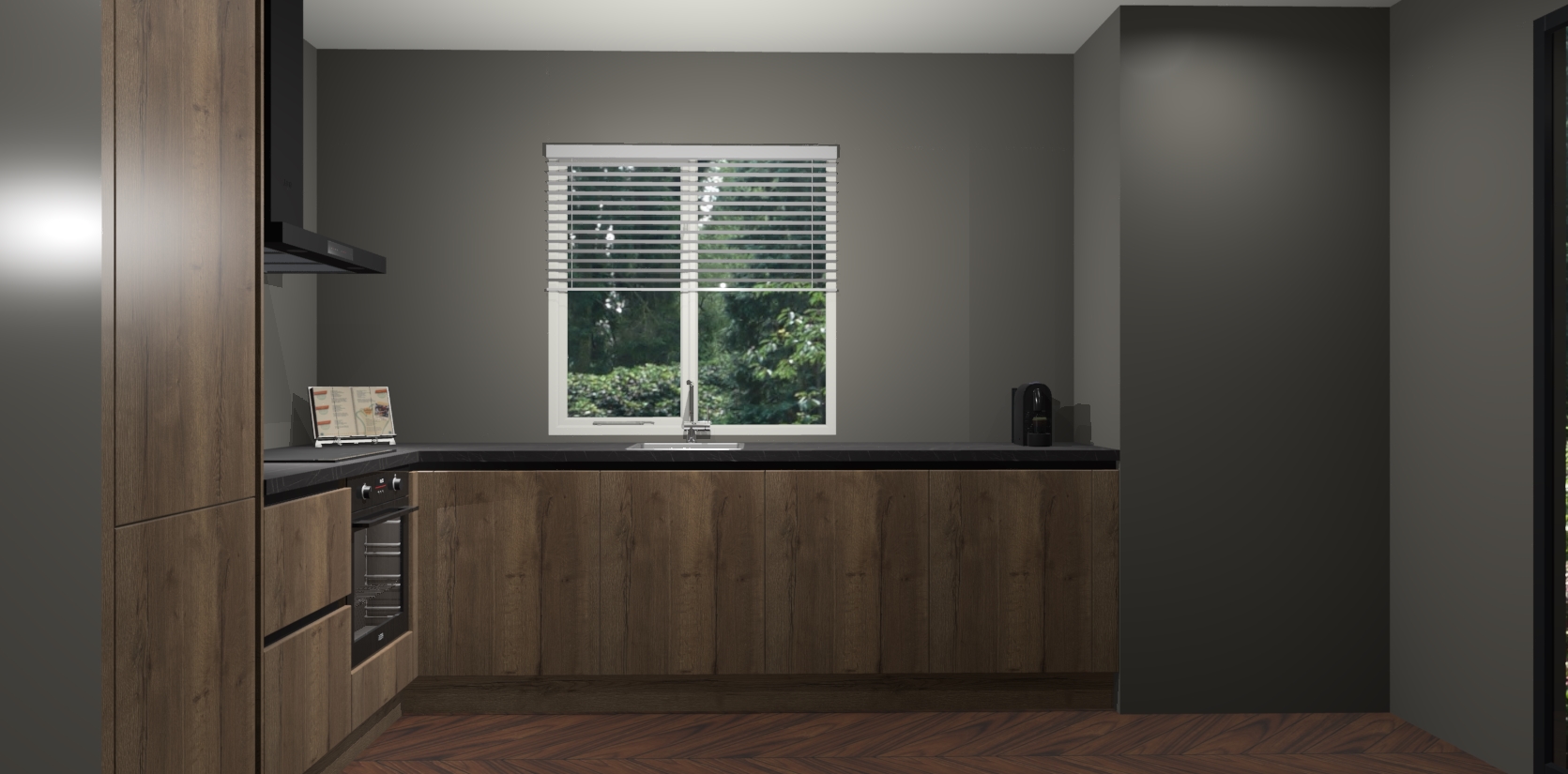 Maak kennis met de Chocolade Eiken keuken Doha - de perfecte aanvulling voor uw moderne keuken! Ervaar tijdloos design, elegantie en een chique uitstraling met onze zwarte handgrepen, soft-close deuren en veel opbergruimte. Dit alles wordt aangeboden tegen een vaste lage prijs voor ongeëvenaarde Duitse keukenkwaliteit!