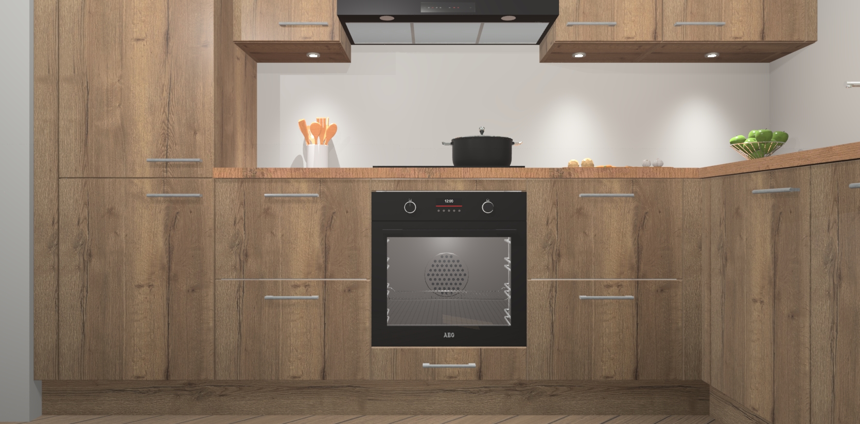 De Chocolade Eiken keuken Geneve is uitgerust met 5 inbouwapparaten - een oven, inductiekookplaat, afzuigkap, vaatwasser en koelkast - voor al uw kook- en bewaarbehoeftes. U kunt deze apparaten desgewenst eenvoudig upgraden naar AEG of de oven omruilen voor een combimagnetron na het plaatsen van uw bestelling. En met de soft close deuren, voldoende opbergruimte en kasten die voorgemonteerd worden geleverd, bent u in een mum van tijd klaar om heerlijke maaltijden te bereiden!