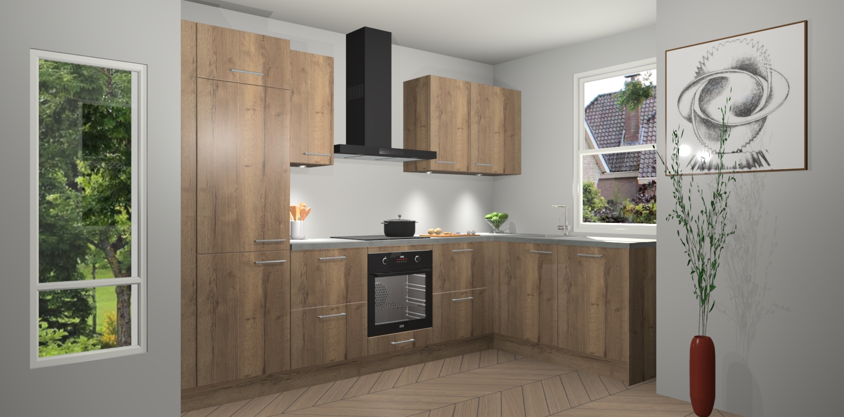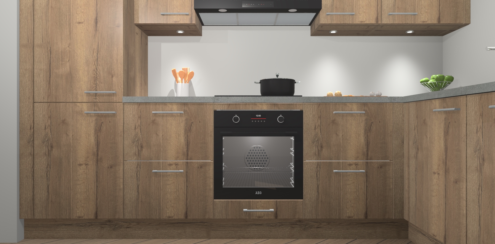 De Chocolade Eiken keuken Geneve is uitgerust met 5 inbouwapparaten - een oven, inductiekookplaat, afzuigkap, vaatwasser en koelkast - voor al uw kook- en bewaarbehoeftes. U kunt deze apparaten desgewenst eenvoudig upgraden naar AEG of de oven omruilen voor een combimagnetron na het plaatsen van uw bestelling. En met de soft close deuren, voldoende opbergruimte en kasten die voorgemonteerd worden geleverd, bent u in een mum van tijd klaar om heerlijke maaltijden te bereiden!