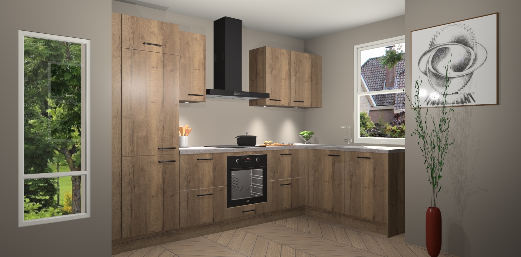 De Chocolade Eiken keuken Geneve is uitgerust met 5 inbouwapparaten - een oven, inductiekookplaat, afzuigkap, vaatwasser en koelkast - voor al uw kook- en bewaarbehoeftes. U kunt deze apparaten desgewenst eenvoudig upgraden naar AEG of de oven omruilen voor een combimagnetron na het plaatsen van uw bestelling. En met de soft close deuren, voldoende opbergruimte en kasten die voorgemonteerd worden geleverd, bent u in een mum van tijd klaar om heerlijke maaltijden te bereiden!