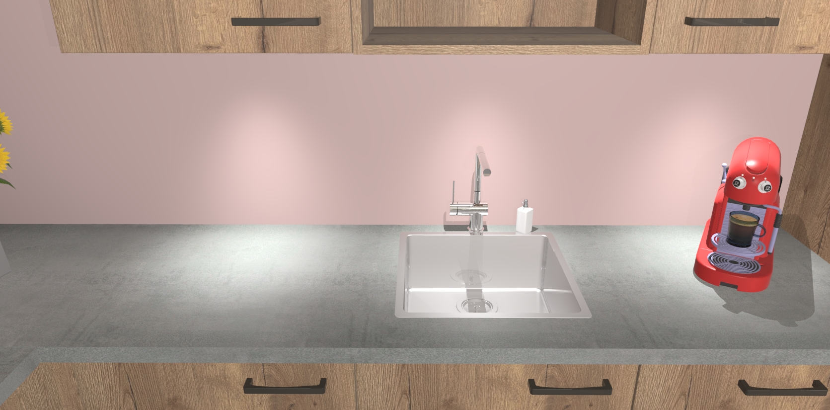 - De spoelbak is nog niet in gevreesd. Dit dient tijdens het werk gedaan te worden