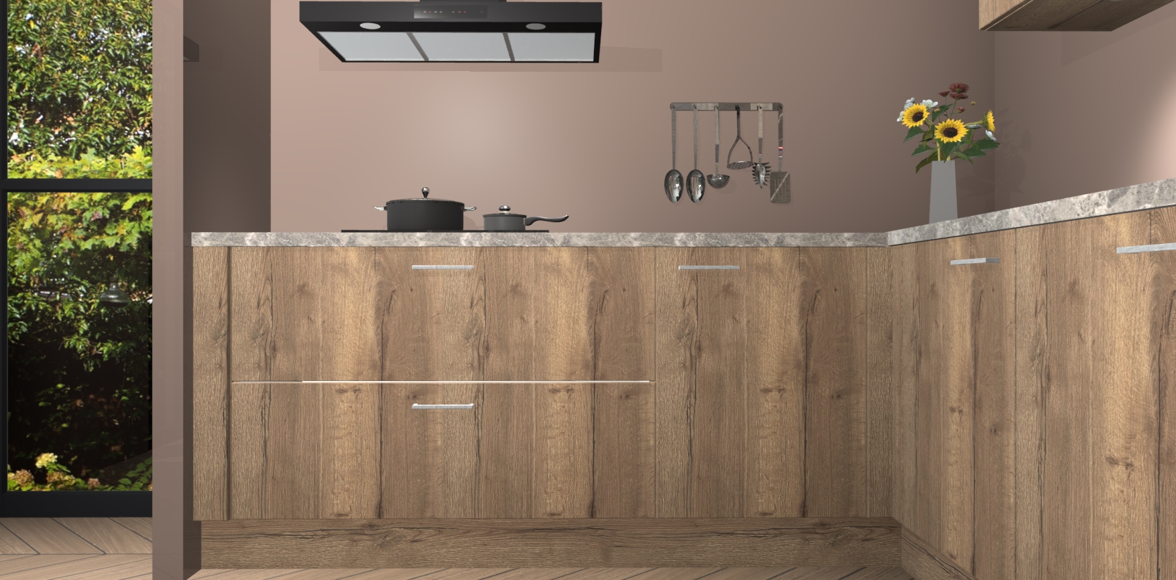 Stelt u zich voor dat u bij thuiskomst wordt begroet door de luxe aanwezigheid van de Chocolade Eiken keuken Gotenburg, een modern design dat op de eerste plaats staat als het gaat om stijl en functionaliteit! Met hoogwaardige afwerking en elegantie die ongeëvenaard elegant is, brengt deze keuken gezelligheid in uw huis. We zijn er zeker van dat u verrast zult zijn door alle extravagantie die deze keuken te bieden heeft.
