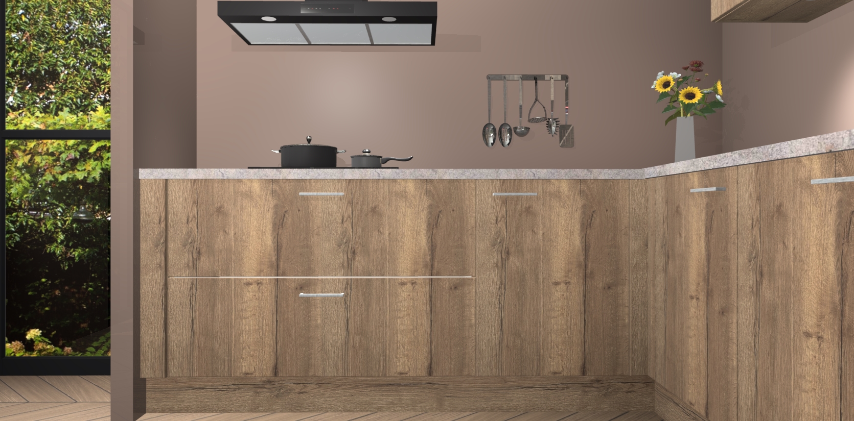 Stelt u zich voor dat u bij thuiskomst wordt begroet door de luxe aanwezigheid van de Chocolade Eiken keuken Gotenburg, een modern design dat op de eerste plaats staat als het gaat om stijl en functionaliteit! Met hoogwaardige afwerking en elegantie die ongeëvenaard elegant is, brengt deze keuken gezelligheid in uw huis. We zijn er zeker van dat u verrast zult zijn door alle extravagantie die deze keuken te bieden heeft.