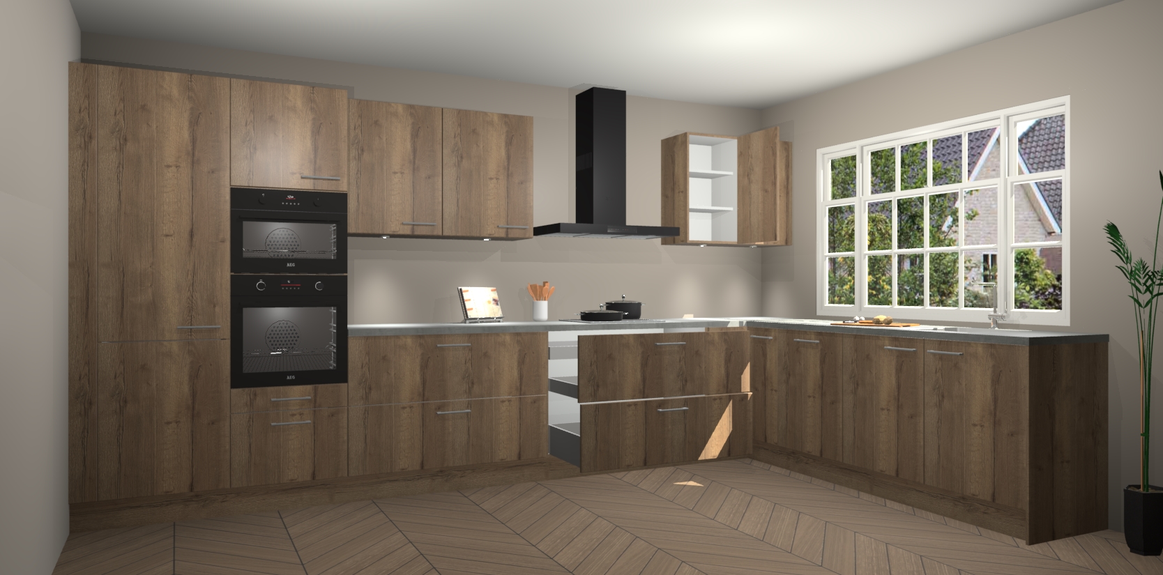 Kom dichtbij de perfecte keuken van uw dromen met de chocolade eiken keuken Graz. Met een prachtige houtlook en eigentijds ontwerp, straalt deze keuken warmte en sfeer uit. Of u nu liefhebber bent van traditionele of moderne stijlen, er is genoeg ruimte om aan al uw behoeften te voldoen.