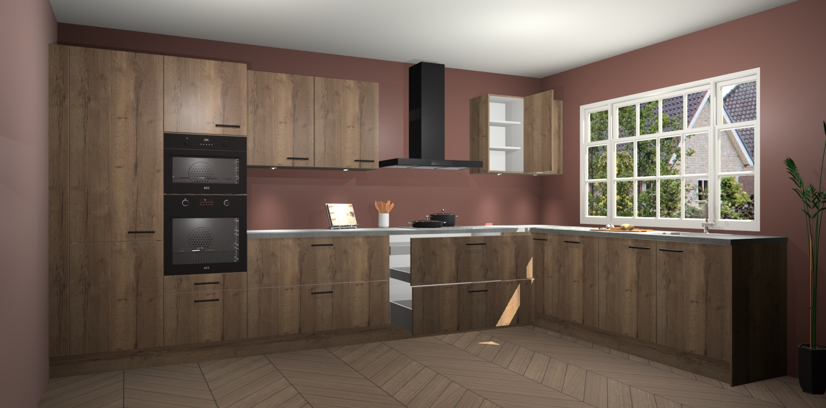 Kom dichtbij de perfecte keuken van uw dromen met de chocolade eiken keuken Graz. Met een prachtige houtlook en eigentijds ontwerp, straalt deze keuken warmte en sfeer uit. Of u nu liefhebber bent van traditionele of moderne stijlen, er is genoeg ruimte om aan al uw behoeften te voldoen.