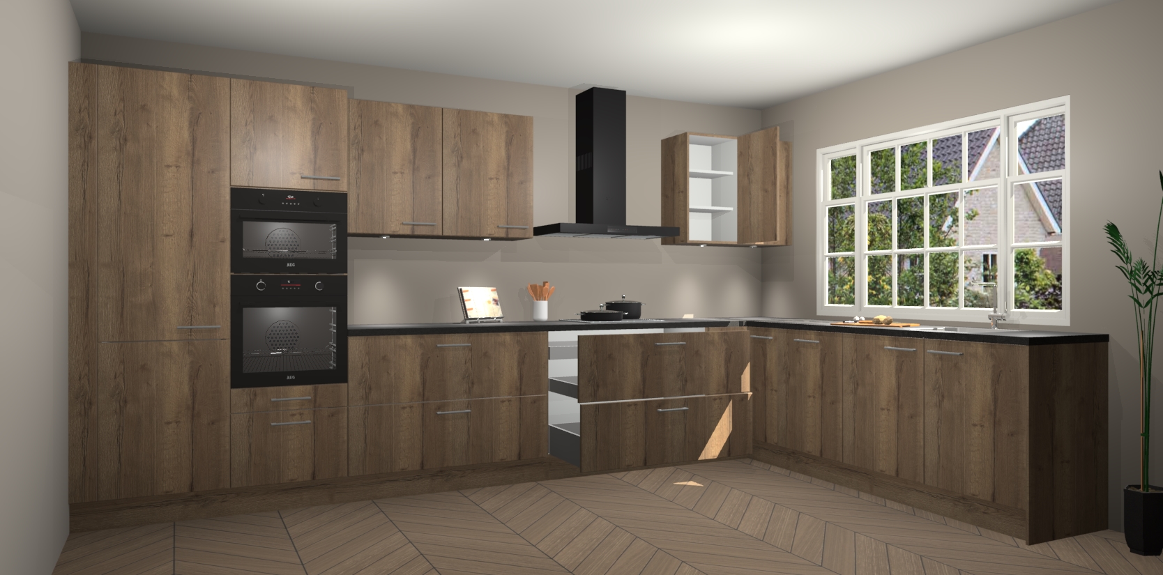 Kom dichtbij de perfecte keuken van uw dromen met de chocolade eiken keuken Graz. Met een prachtige houtlook en eigentijds ontwerp, straalt deze keuken warmte en sfeer uit. Of u nu liefhebber bent van traditionele of moderne stijlen, er is genoeg ruimte om aan al uw behoeften te voldoen.
