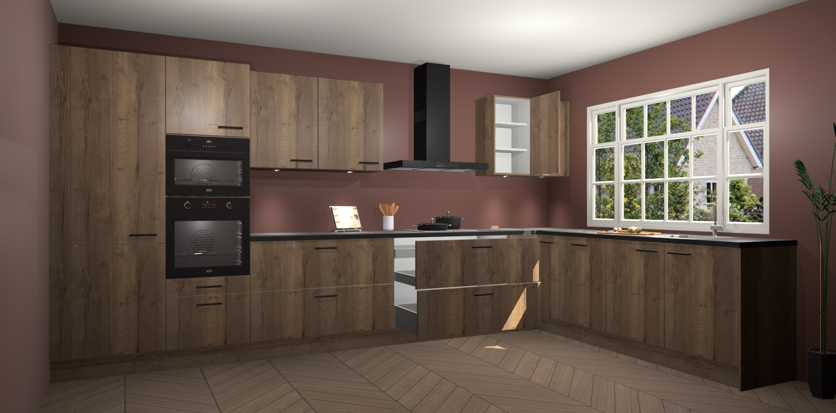 Kom dichtbij de perfecte keuken van uw dromen met de chocolade eiken keuken Graz. Met een prachtige houtlook en eigentijds ontwerp, straalt deze keuken warmte en sfeer uit. Of u nu liefhebber bent van traditionele of moderne stijlen, er is genoeg ruimte om aan al uw behoeften te voldoen.