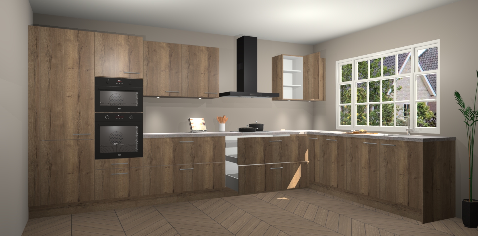 Kom dichtbij de perfecte keuken van uw dromen met de chocolade eiken keuken Graz. Met een prachtige houtlook en eigentijds ontwerp, straalt deze keuken warmte en sfeer uit. Of u nu liefhebber bent van traditionele of moderne stijlen, er is genoeg ruimte om aan al uw behoeften te voldoen.
