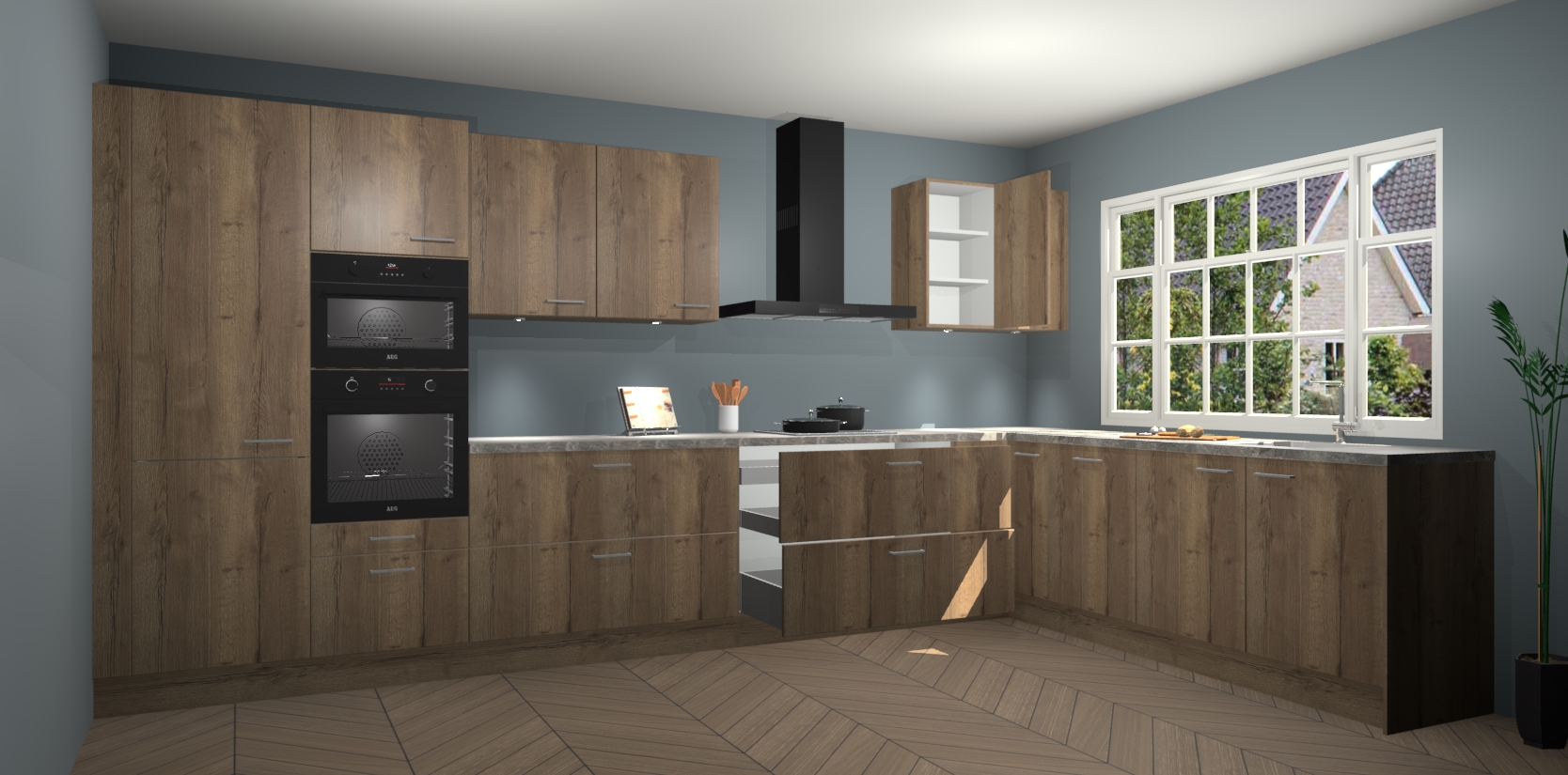 Kom dichtbij de perfecte keuken van uw dromen met de chocolade eiken keuken Graz. Met een prachtige houtlook en eigentijds ontwerp, straalt deze keuken warmte en sfeer uit. Of u nu liefhebber bent van traditionele of moderne stijlen, er is genoeg ruimte om aan al uw behoeften te voldoen.