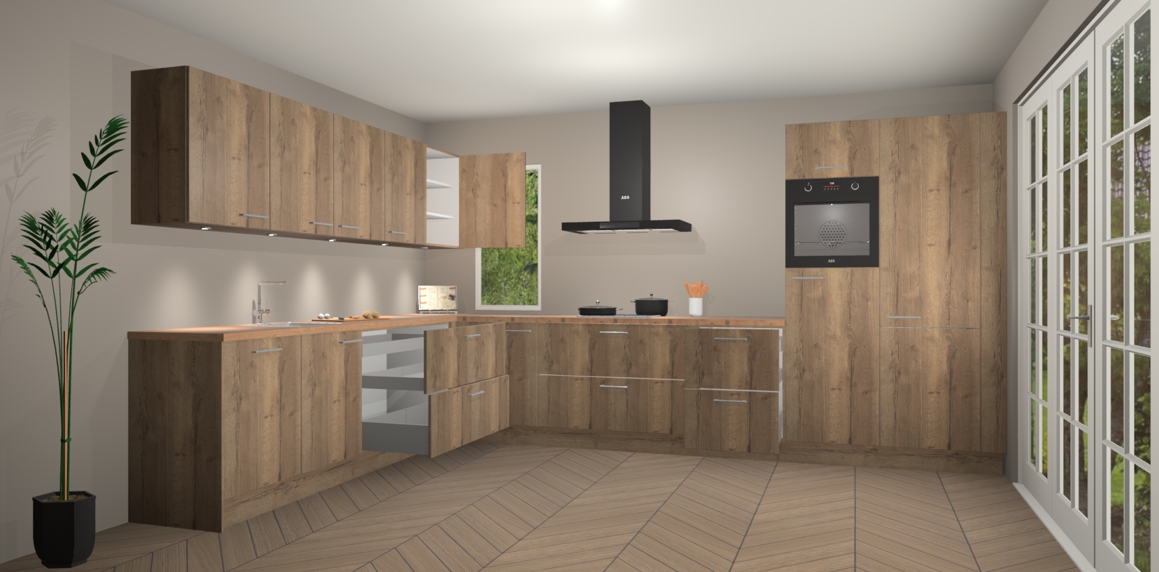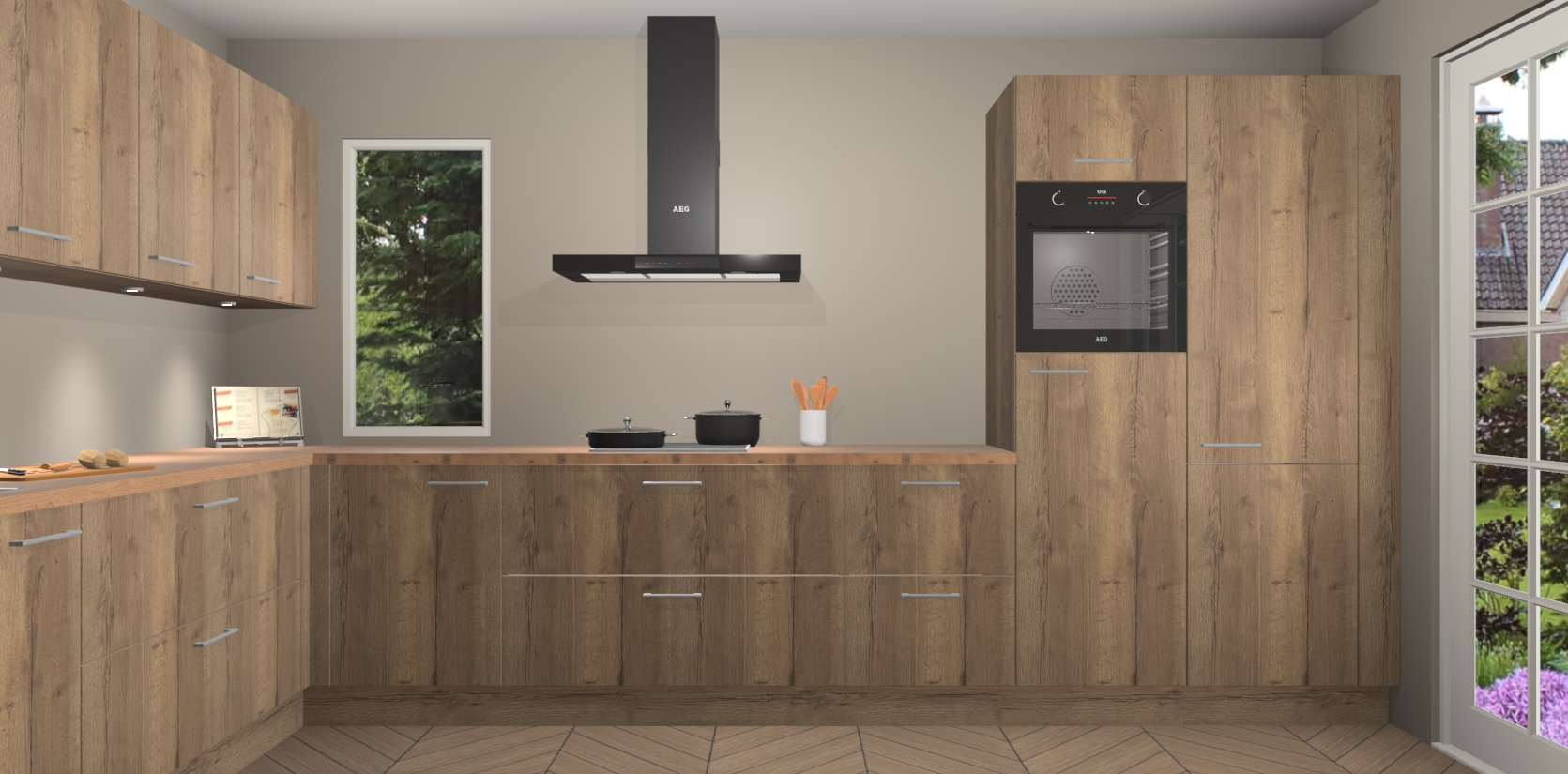 Heeft u nog apparatuur nodig? Geen probleem: de chocolade eiken keuken Harare bevat vijf ingebouwde apparaten - een oven, inductiekookplaat, afzuigkap, vaatwasser en koelkast - die gemakkelijk kunnen worden bijgewerkt naar AEG na bestelling. En als dat nog niet genoeg is; onze kasten worden pre-geassembleerd geleverd en zijn verkrijgbaar tegen een vastgeroeste lage prijs! U hoeft nooit meer te zoeken naar goede kwaliteit en service want onze producten hebben echt Duitse kwaliteit.