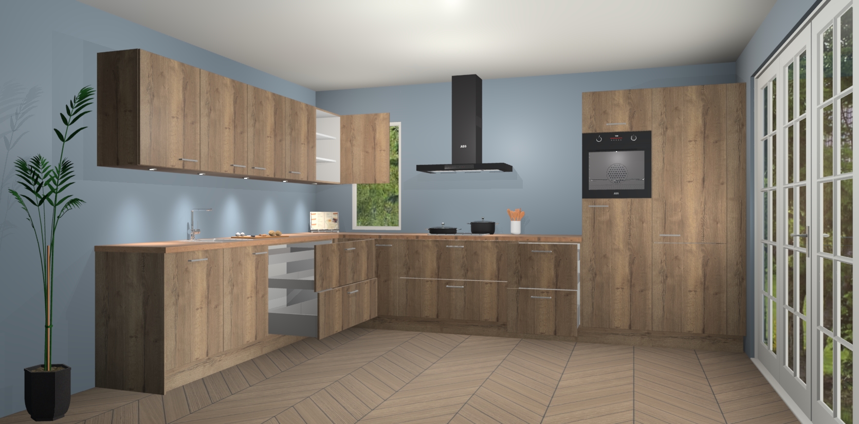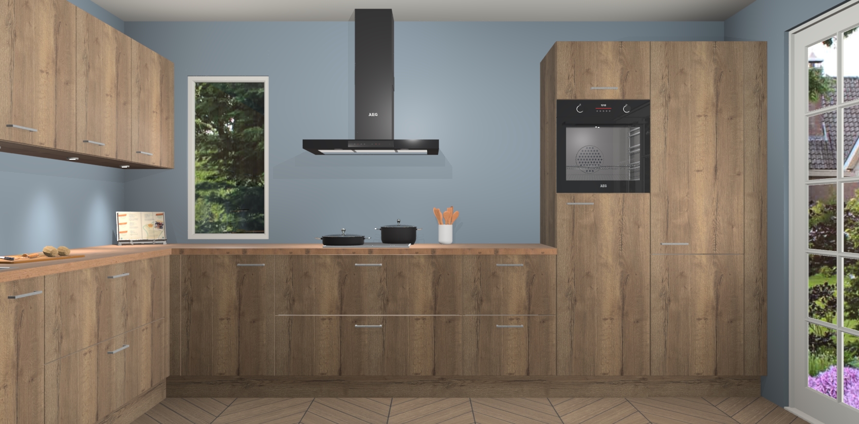 Heeft u nog apparatuur nodig? Geen probleem: de chocolade eiken keuken Harare bevat vijf ingebouwde apparaten - een oven, inductiekookplaat, afzuigkap, vaatwasser en koelkast - die gemakkelijk kunnen worden bijgewerkt naar AEG na bestelling. En als dat nog niet genoeg is; onze kasten worden pre-geassembleerd geleverd en zijn verkrijgbaar tegen een vastgeroeste lage prijs! U hoeft nooit meer te zoeken naar goede kwaliteit en service want onze producten hebben echt Duitse kwaliteit.