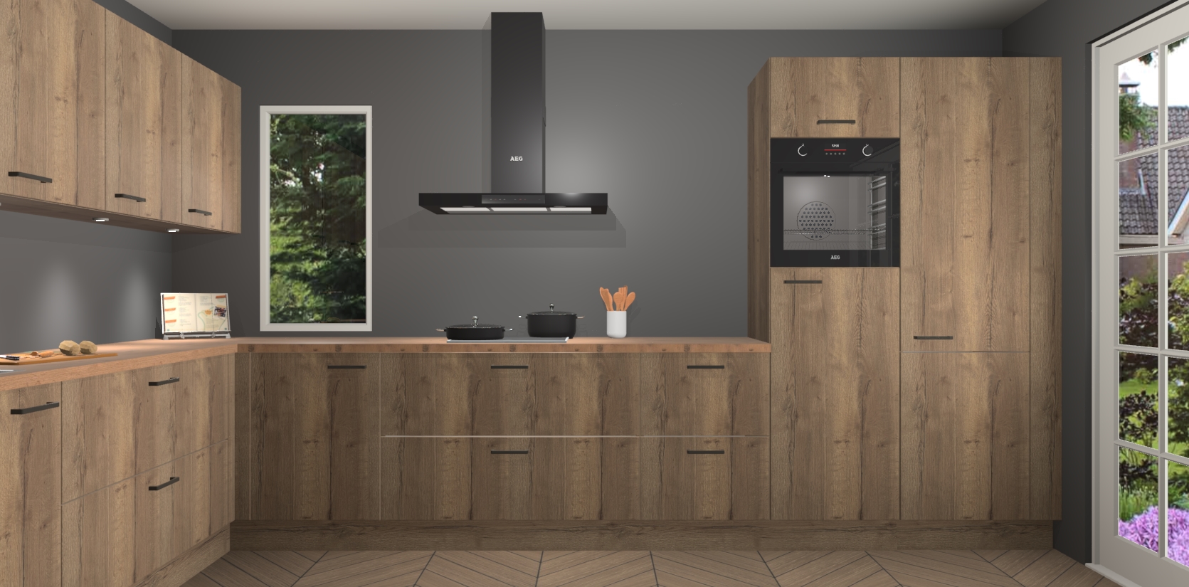 Heeft u nog apparatuur nodig? Geen probleem: de chocolade eiken keuken Harare bevat vijf ingebouwde apparaten - een oven, inductiekookplaat, afzuigkap, vaatwasser en koelkast - die gemakkelijk kunnen worden bijgewerkt naar AEG na bestelling. En als dat nog niet genoeg is; onze kasten worden pre-geassembleerd geleverd en zijn verkrijgbaar tegen een vastgeroeste lage prijs! U hoeft nooit meer te zoeken naar goede kwaliteit en service want onze producten hebben echt Duitse kwaliteit.