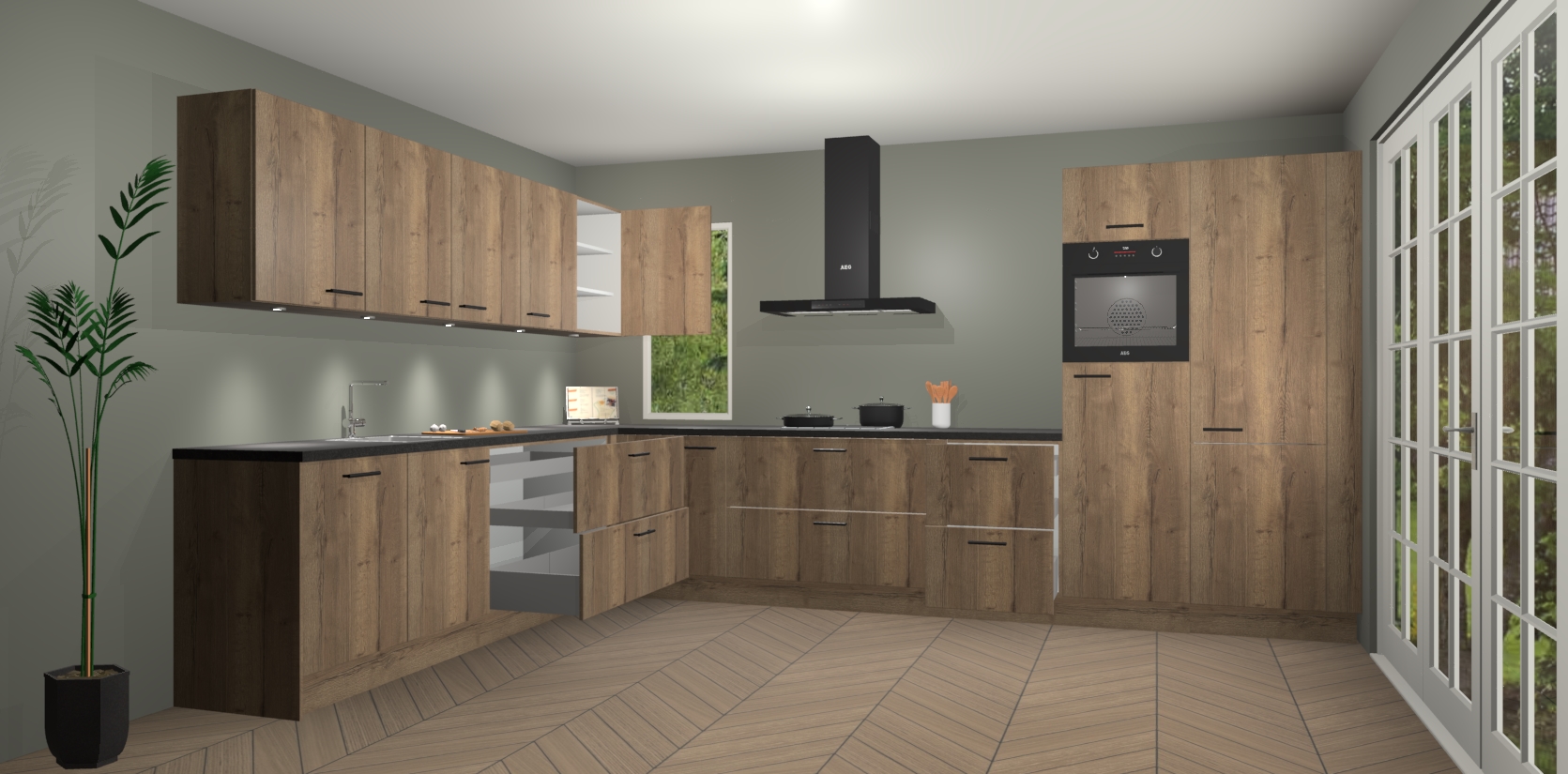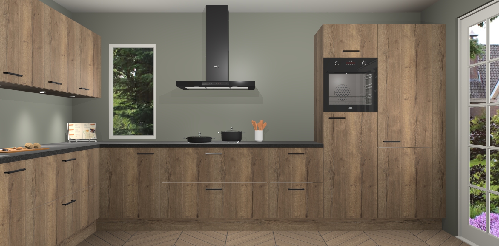 Heeft u nog apparatuur nodig? Geen probleem: de chocolade eiken keuken Harare bevat vijf ingebouwde apparaten - een oven, inductiekookplaat, afzuigkap, vaatwasser en koelkast - die gemakkelijk kunnen worden bijgewerkt naar AEG na bestelling. En als dat nog niet genoeg is; onze kasten worden pre-geassembleerd geleverd en zijn verkrijgbaar tegen een vastgeroeste lage prijs! U hoeft nooit meer te zoeken naar goede kwaliteit en service want onze producten hebben echt Duitse kwaliteit.