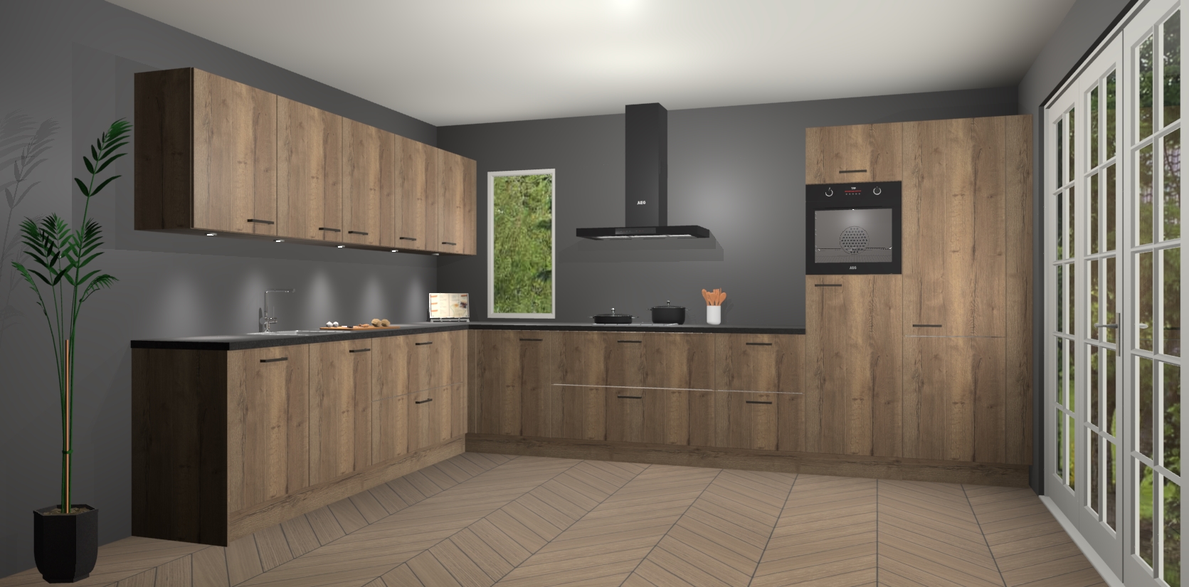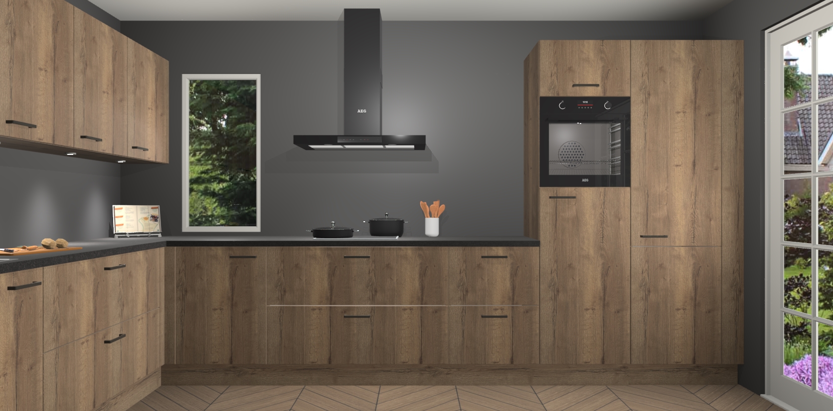 Heeft u nog apparatuur nodig? Geen probleem: de chocolade eiken keuken Harare bevat vijf ingebouwde apparaten - een oven, inductiekookplaat, afzuigkap, vaatwasser en koelkast - die gemakkelijk kunnen worden bijgewerkt naar AEG na bestelling. En als dat nog niet genoeg is; onze kasten worden pre-geassembleerd geleverd en zijn verkrijgbaar tegen een vastgeroeste lage prijs! U hoeft nooit meer te zoeken naar goede kwaliteit en service want onze producten hebben echt Duitse kwaliteit.