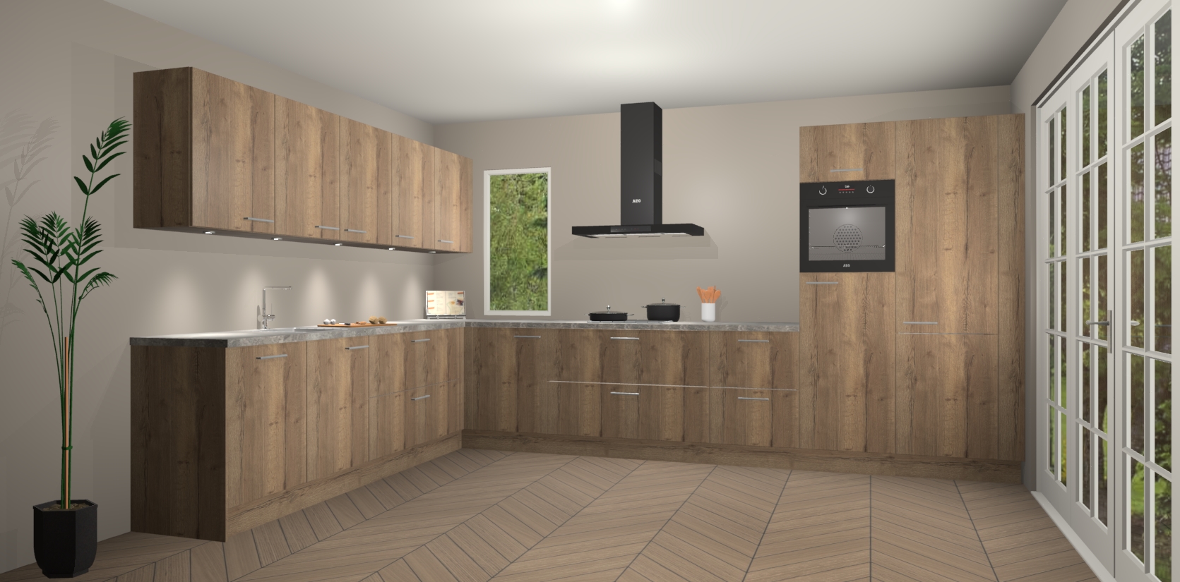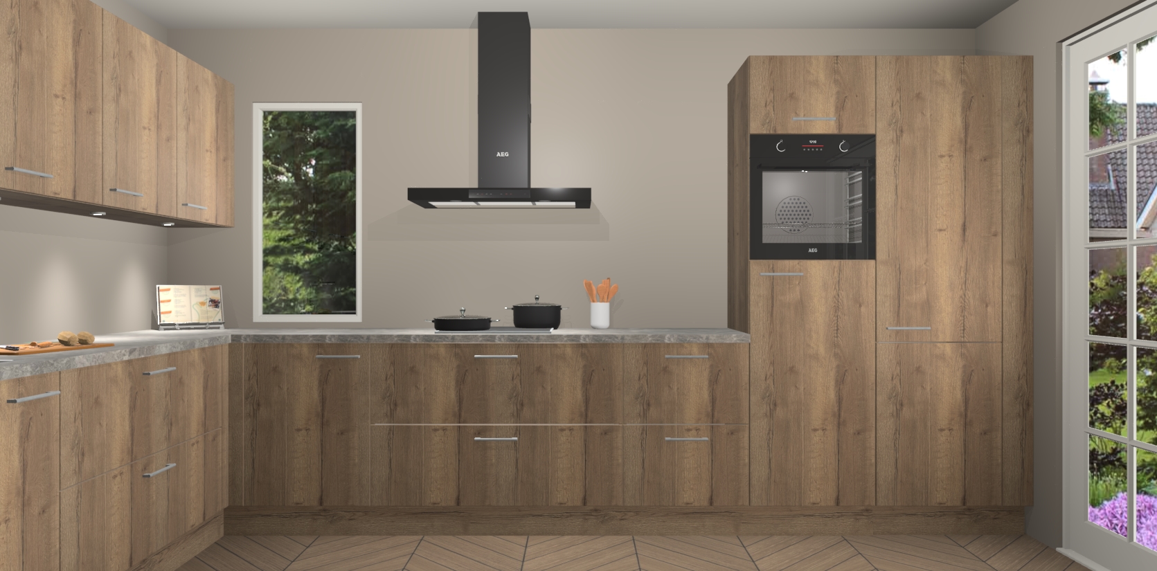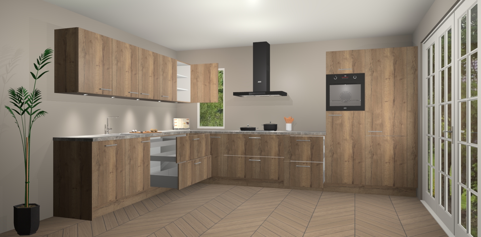 Heeft u nog apparatuur nodig? Geen probleem: de chocolade eiken keuken Harare bevat vijf ingebouwde apparaten - een oven, inductiekookplaat, afzuigkap, vaatwasser en koelkast - die gemakkelijk kunnen worden bijgewerkt naar AEG na bestelling. En als dat nog niet genoeg is; onze kasten worden pre-geassembleerd geleverd en zijn verkrijgbaar tegen een vastgeroeste lage prijs! U hoeft nooit meer te zoeken naar goede kwaliteit en service want onze producten hebben echt Duitse kwaliteit.
