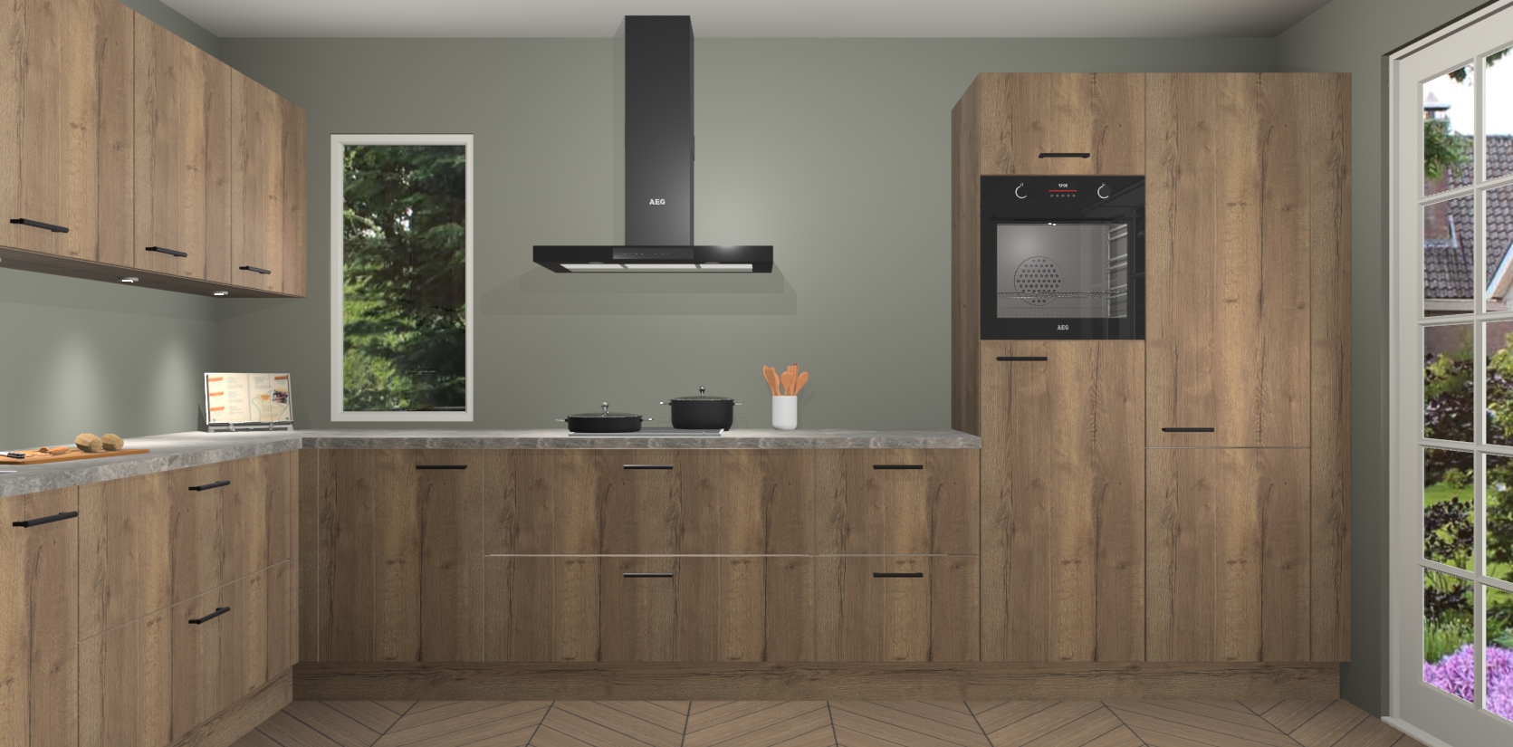Heeft u nog apparatuur nodig? Geen probleem: de chocolade eiken keuken Harare bevat vijf ingebouwde apparaten - een oven, inductiekookplaat, afzuigkap, vaatwasser en koelkast - die gemakkelijk kunnen worden bijgewerkt naar AEG na bestelling. En als dat nog niet genoeg is; onze kasten worden pre-geassembleerd geleverd en zijn verkrijgbaar tegen een vastgeroeste lage prijs! U hoeft nooit meer te zoeken naar goede kwaliteit en service want onze producten hebben echt Duitse kwaliteit.