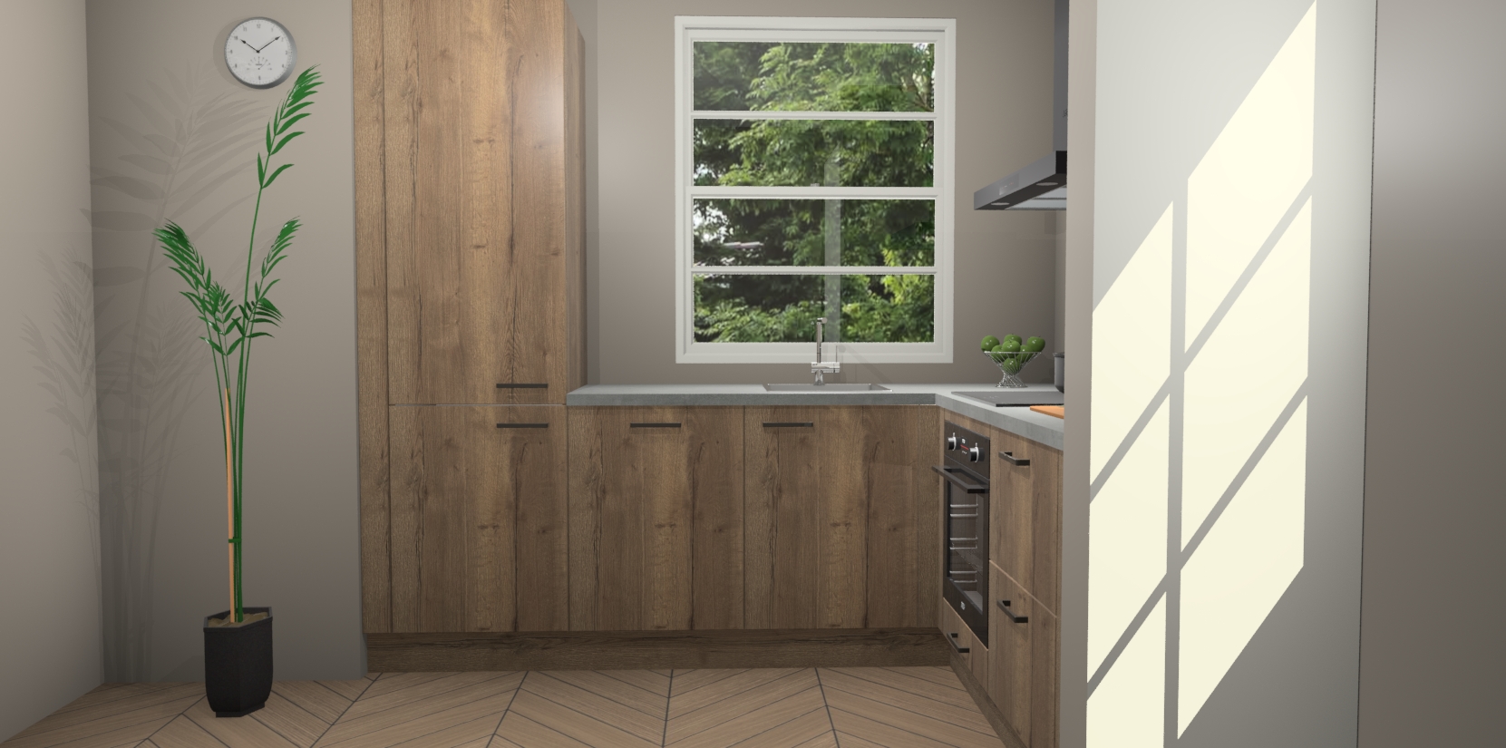 Wilt u een echte aanwinst voor uw keuken, maar bent u op zoek naar iets specialers dan de standaardkeukens? Kies dan voor de Chocolade Eiken keuken Harbin! Dit prachtige hoekkeukenontwerp geeft u alle ruimte om optimaal te genieten van heerlijk koken. Het uitmuntende afwerkingsniveau, de fraaie houtstructuur en de sfeervolle zwarte grepen maken van de Chocolade Eiken keuken Harbin de perfecte keuze voor zowel enthousiaste thuiskoks als design-minded interieurliefhebbers.