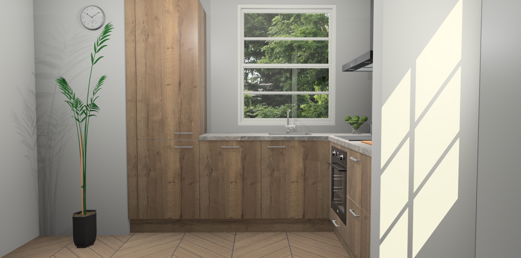 Wilt u een echte aanwinst voor uw keuken, maar bent u op zoek naar iets specialers dan de standaardkeukens? Kies dan voor de Chocolade Eiken keuken Harbin! Dit prachtige hoekkeukenontwerp geeft u alle ruimte om optimaal te genieten van heerlijk koken. Het uitmuntende afwerkingsniveau, de fraaie houtstructuur en de sfeervolle zwarte grepen maken van de Chocolade Eiken keuken Harbin de perfecte keuze voor zowel enthousiaste thuiskoks als design-minded interieurliefhebbers.
