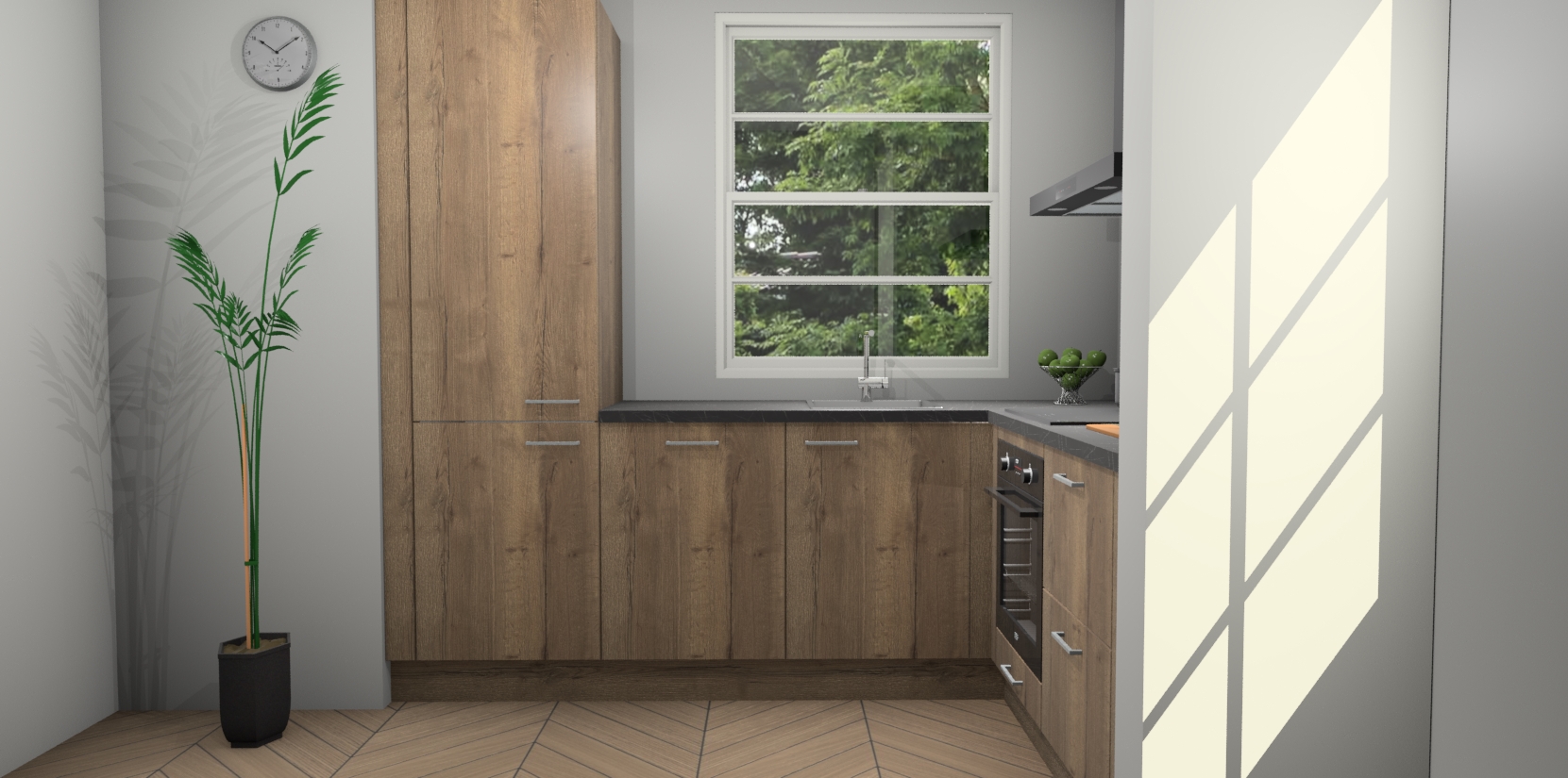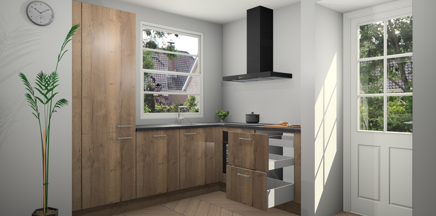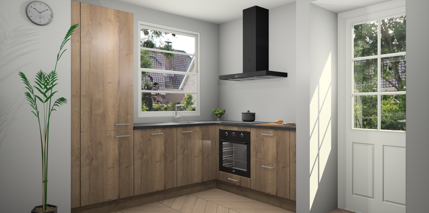 Wilt u een echte aanwinst voor uw keuken, maar bent u op zoek naar iets specialers dan de standaardkeukens? Kies dan voor de Chocolade Eiken keuken Harbin! Dit prachtige hoekkeukenontwerp geeft u alle ruimte om optimaal te genieten van heerlijk koken. Het uitmuntende afwerkingsniveau, de fraaie houtstructuur en de sfeervolle zwarte grepen maken van de Chocolade Eiken keuken Harbin de perfecte keuze voor zowel enthousiaste thuiskoks als design-minded interieurliefhebbers.