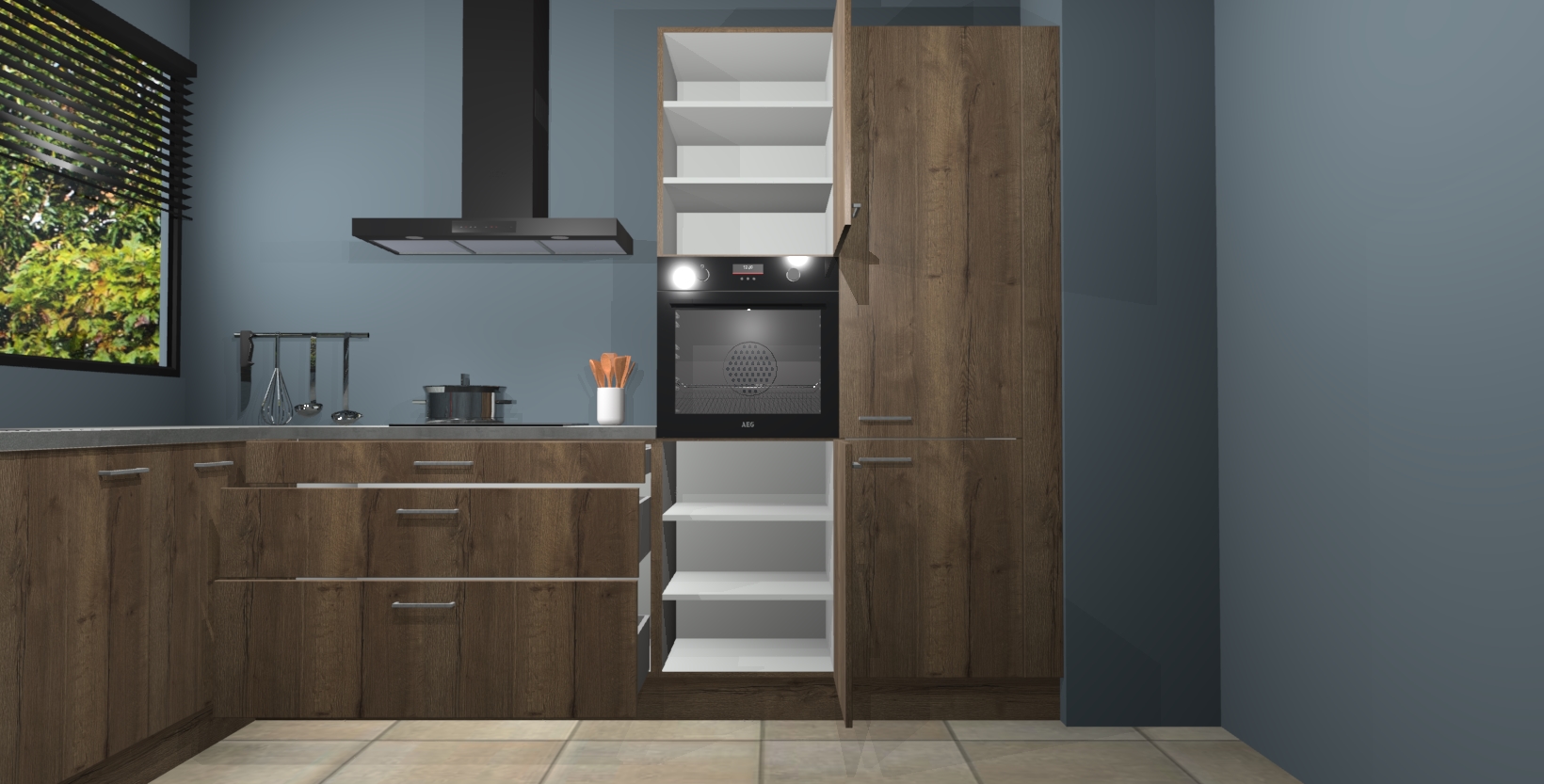 Met een modern, tijdloos design en ruime opslagruimte, zult u zich in no-time thuis voelen in uw nieuwe keuken. Uw leven wordt eenvoudiger met de soft-close deuren die voor het ultieme stille comfort zorgen - geen geluid dat u stoort terwijl u kookt. Ook is de keuken voorzien van 5 ingebouwde apparaten: een oven, inductie kookplaat, afzuigkap, vaatwasser en koelkast. Deze kunnen gemakkelijk na bestelling worden bijgewerkt naar AEG - waardoor uw luxe ervaring compleet is.