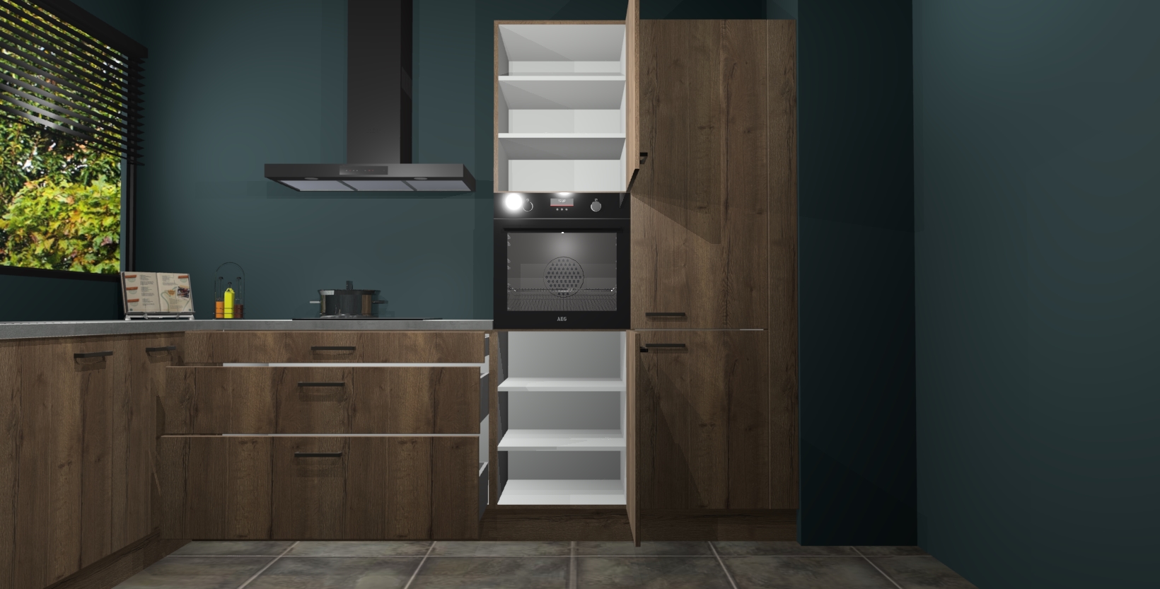 Met een modern, tijdloos design en ruime opslagruimte, zult u zich in no-time thuis voelen in uw nieuwe keuken. Uw leven wordt eenvoudiger met de soft-close deuren die voor het ultieme stille comfort zorgen - geen geluid dat u stoort terwijl u kookt. Ook is de keuken voorzien van 5 ingebouwde apparaten: een oven, inductie kookplaat, afzuigkap, vaatwasser en koelkast. Deze kunnen gemakkelijk na bestelling worden bijgewerkt naar AEG - waardoor uw luxe ervaring compleet is.